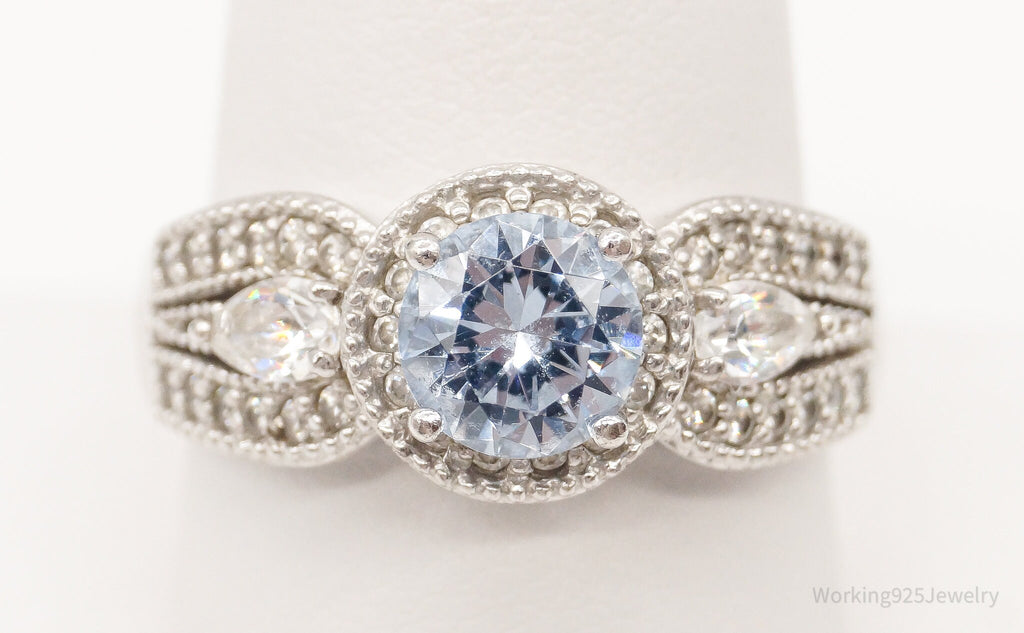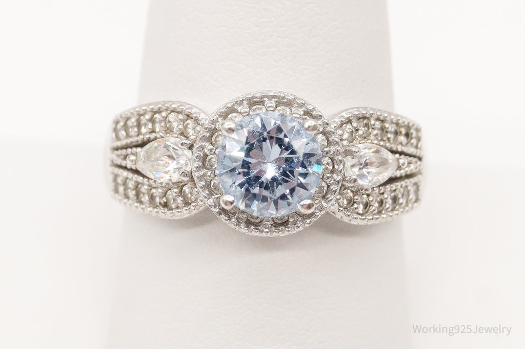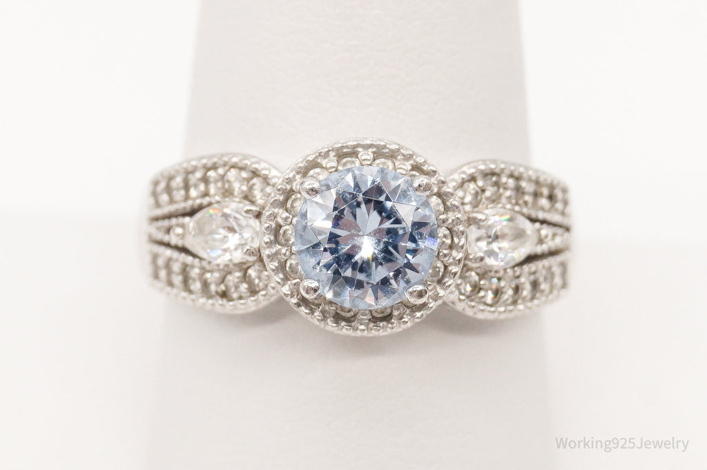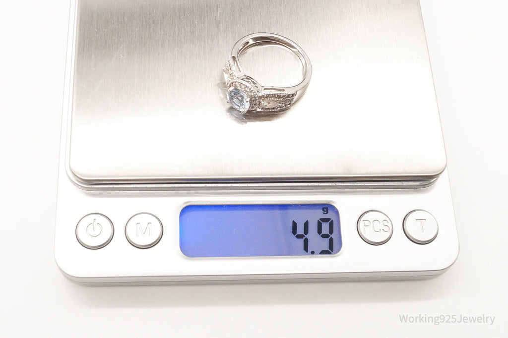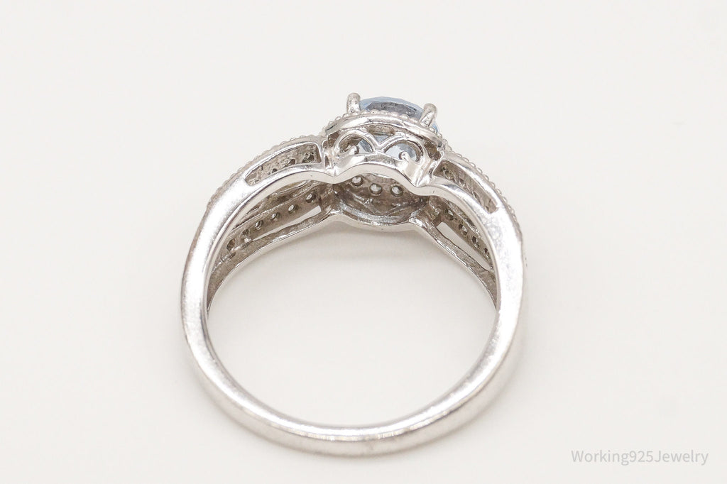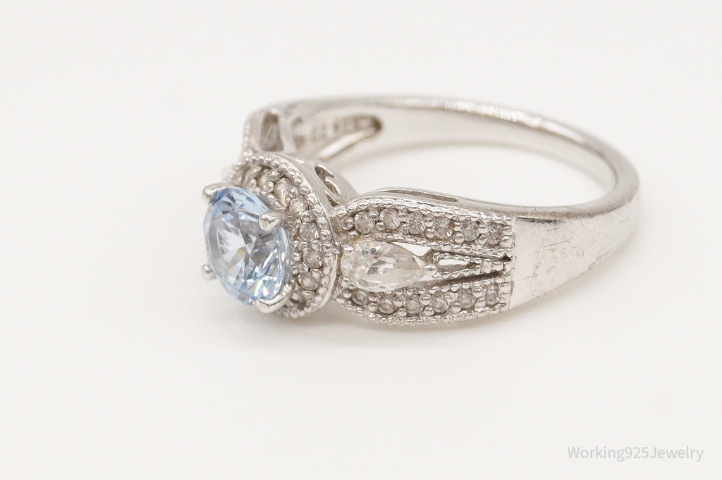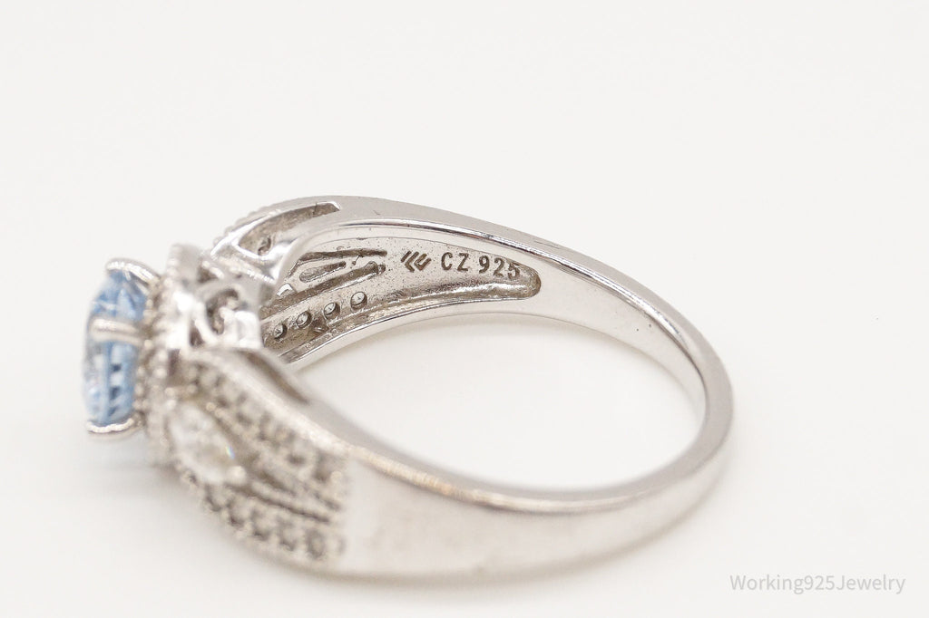 Aquamarine Cubic Zirconia Platinum Clad Sterling Silver Ring - Size 9