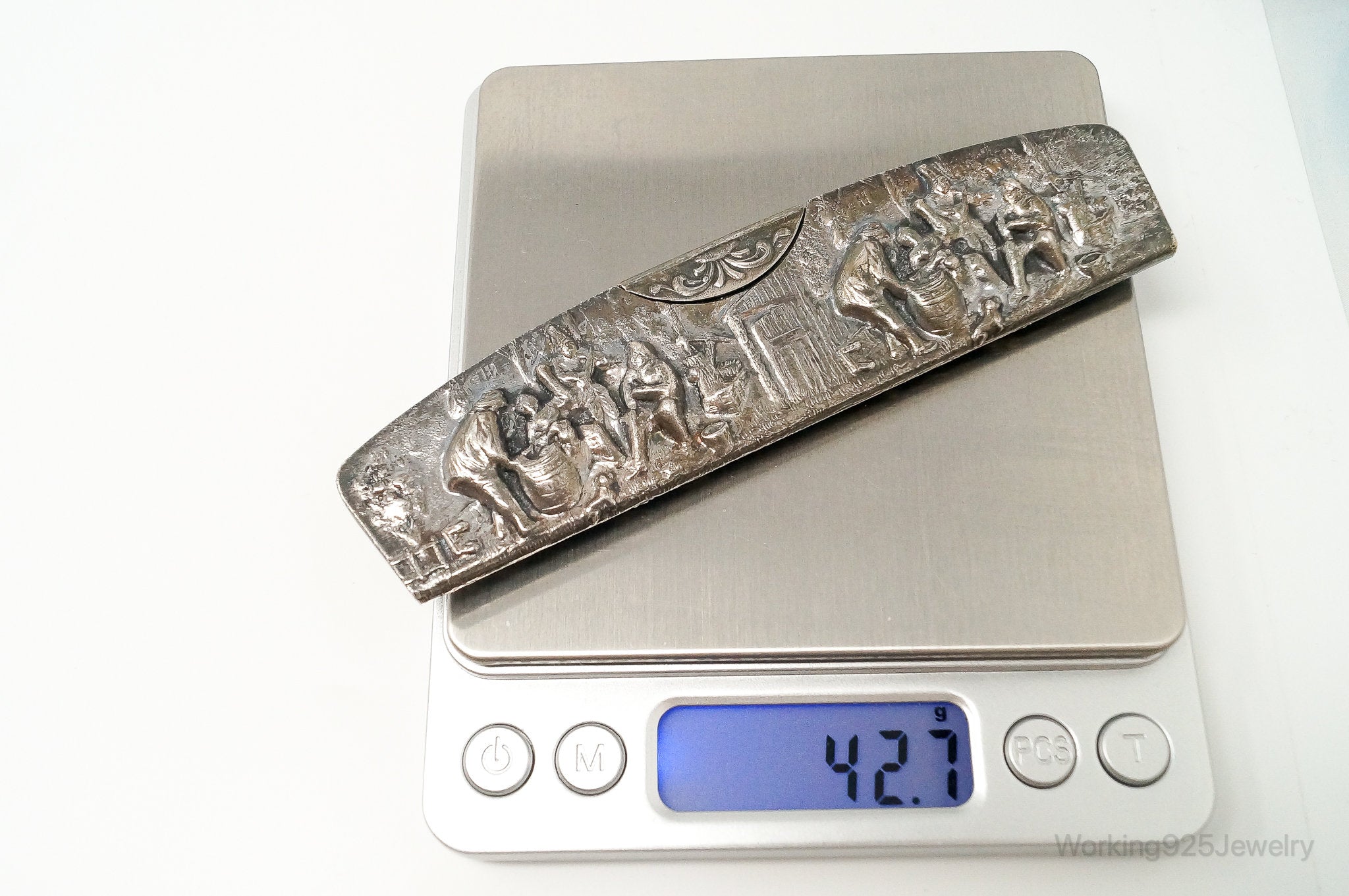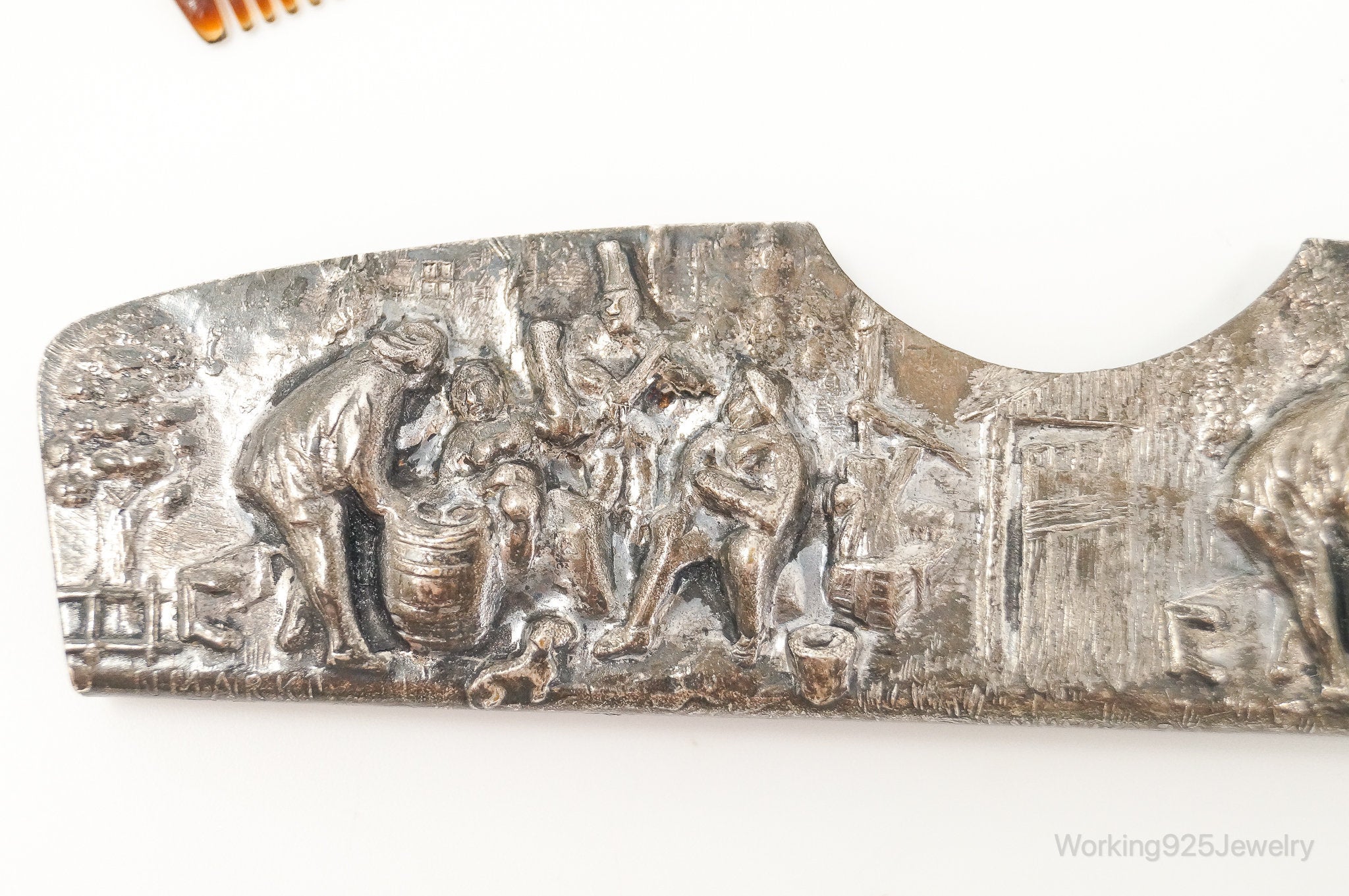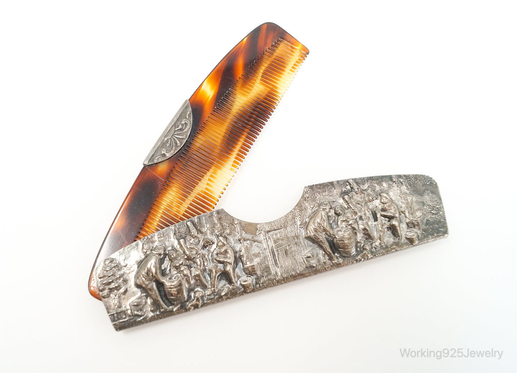 ATQ Denmark Designer Hans Jensen Tortoise Shell Comb Sterling Silver Sheath