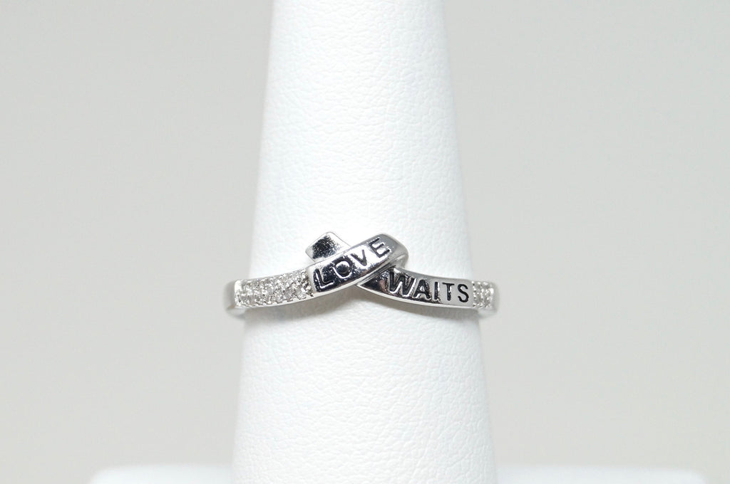 Beautiful "Love Waits" Unity Promise Ring Cz Sterling Silver Sz 7