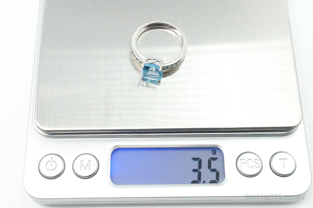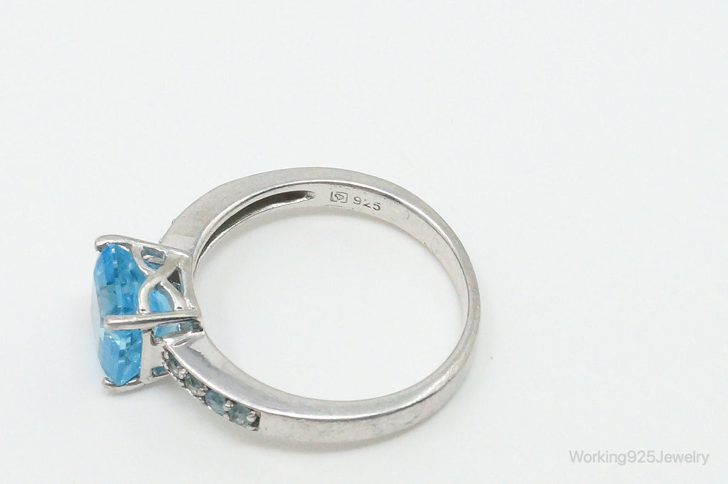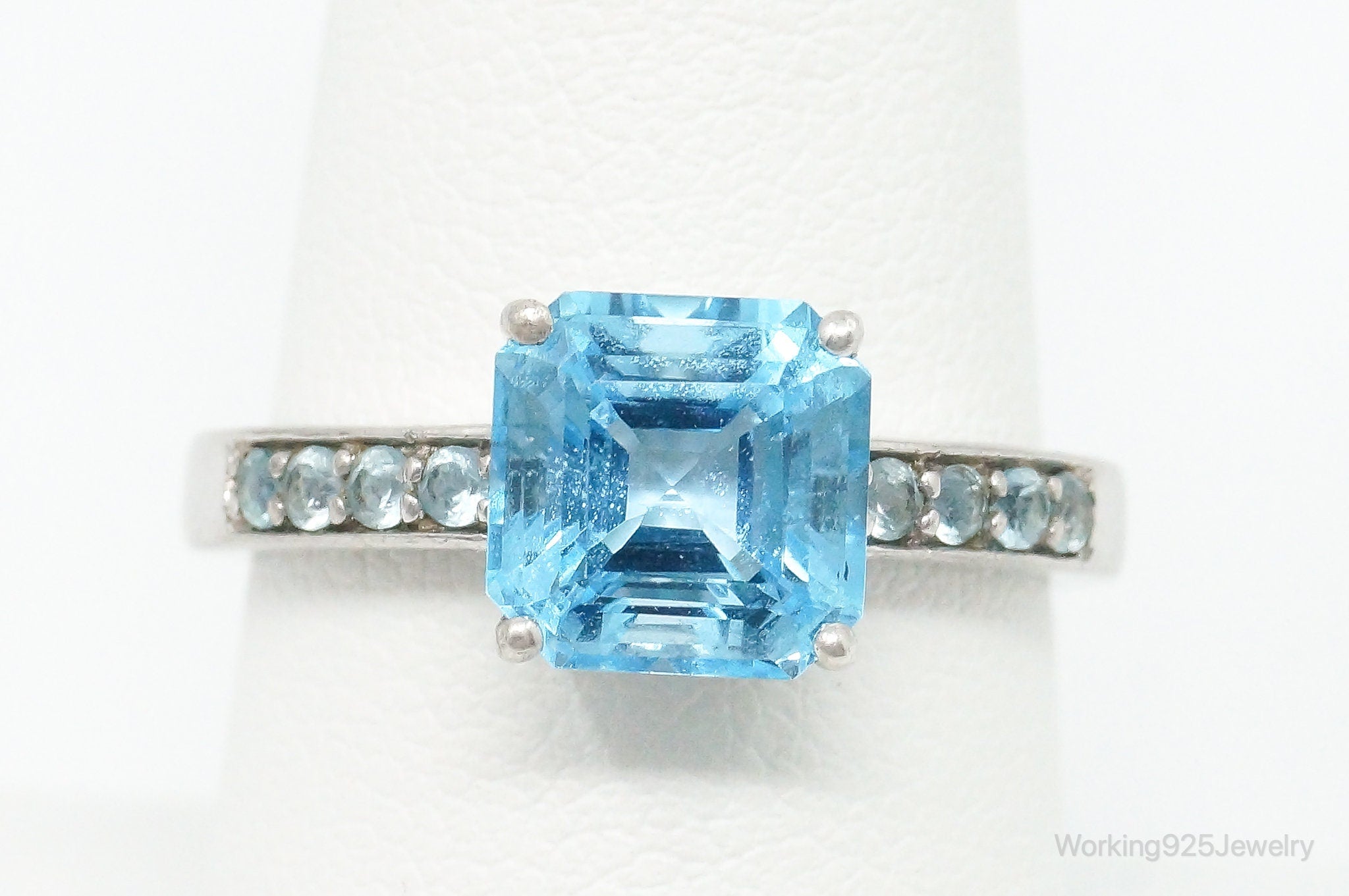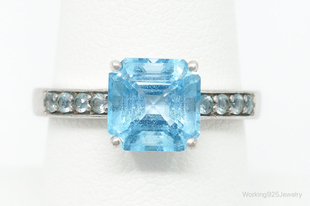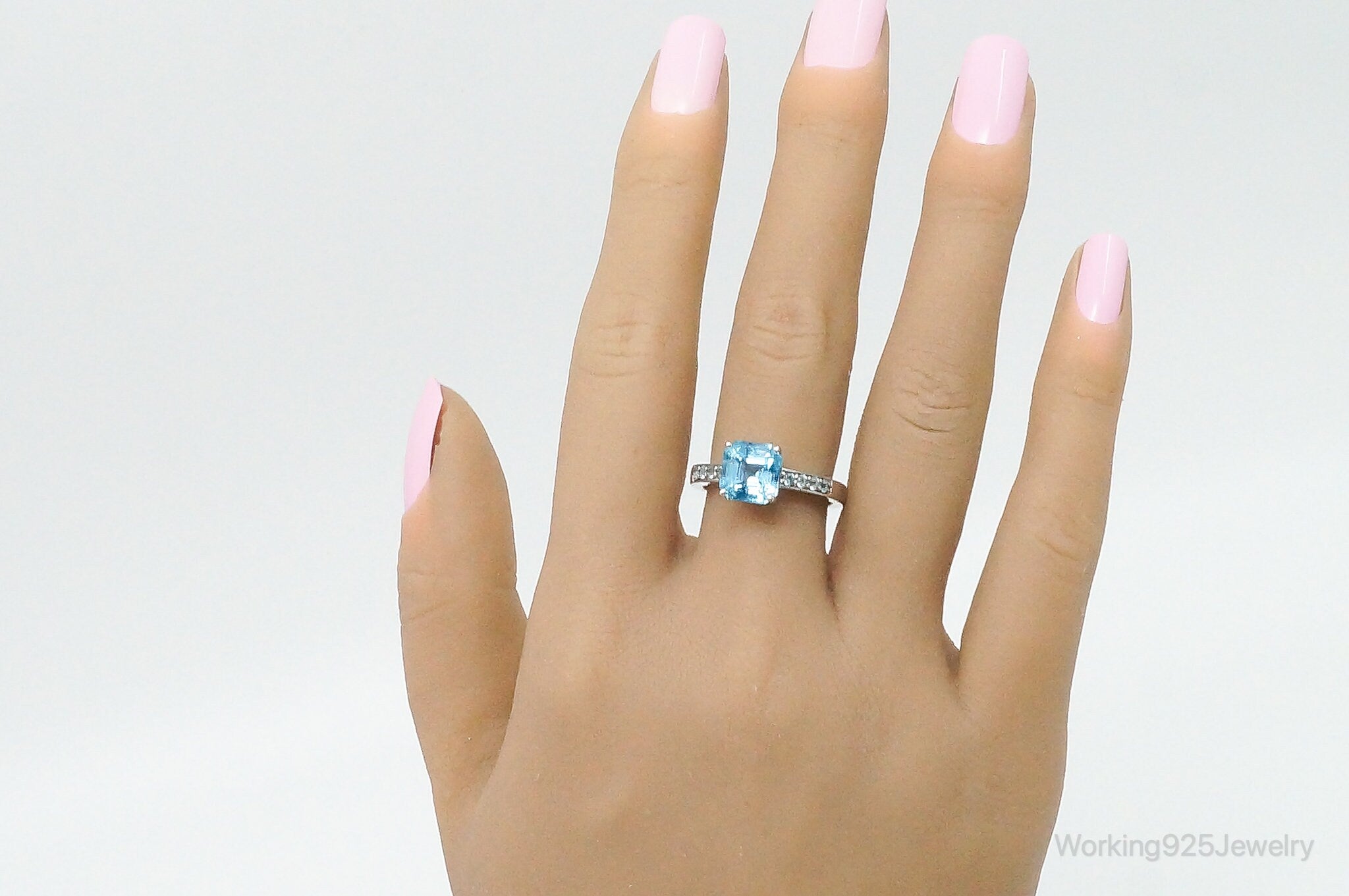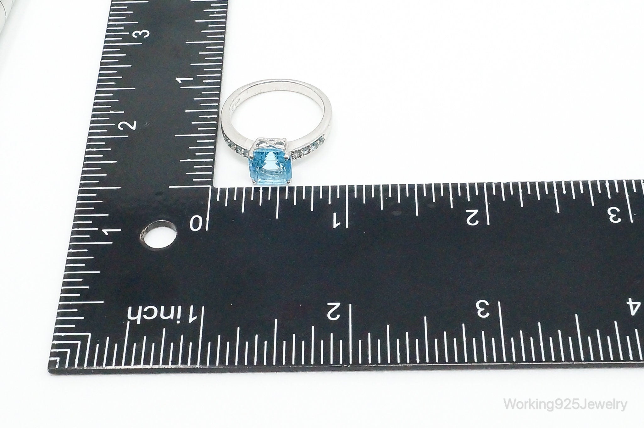 Blue Topaz Aquamarine Sterling Silver Ring - Size 8.25 Adjustable