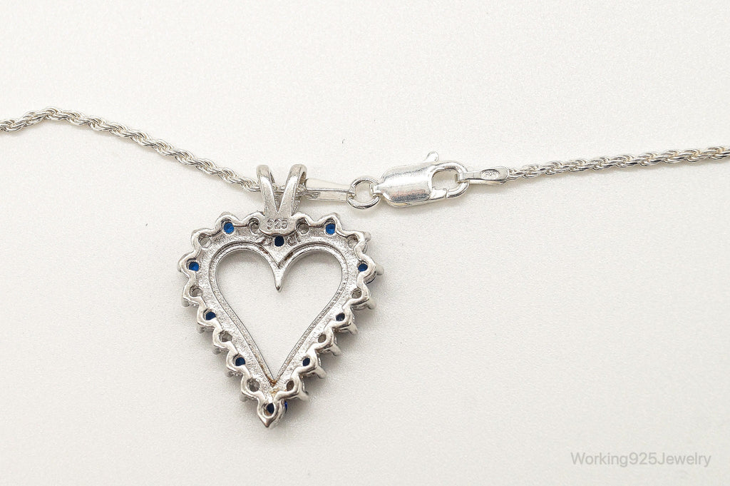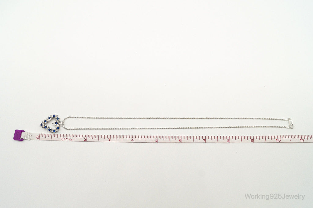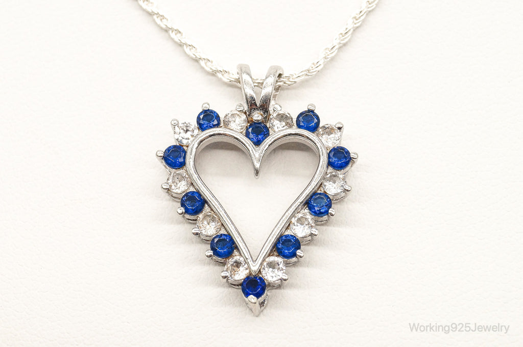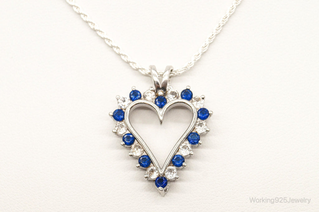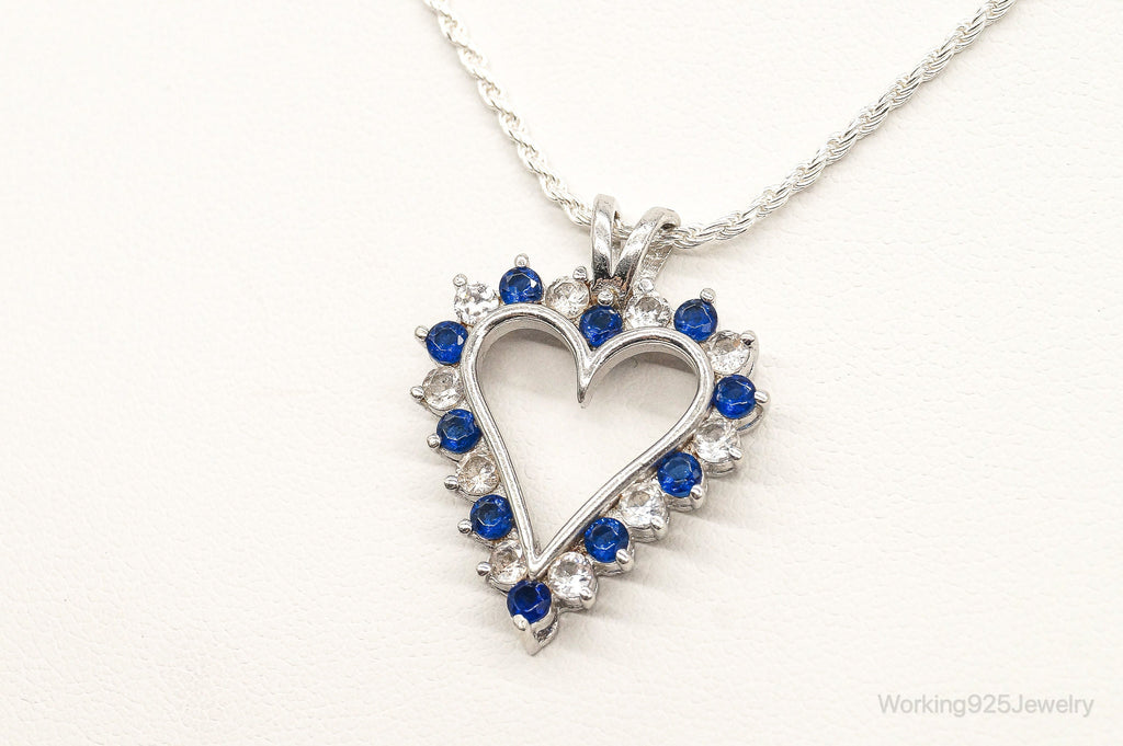 Blue & White Cubic Zirconia Heart Sterling Silver Necklace