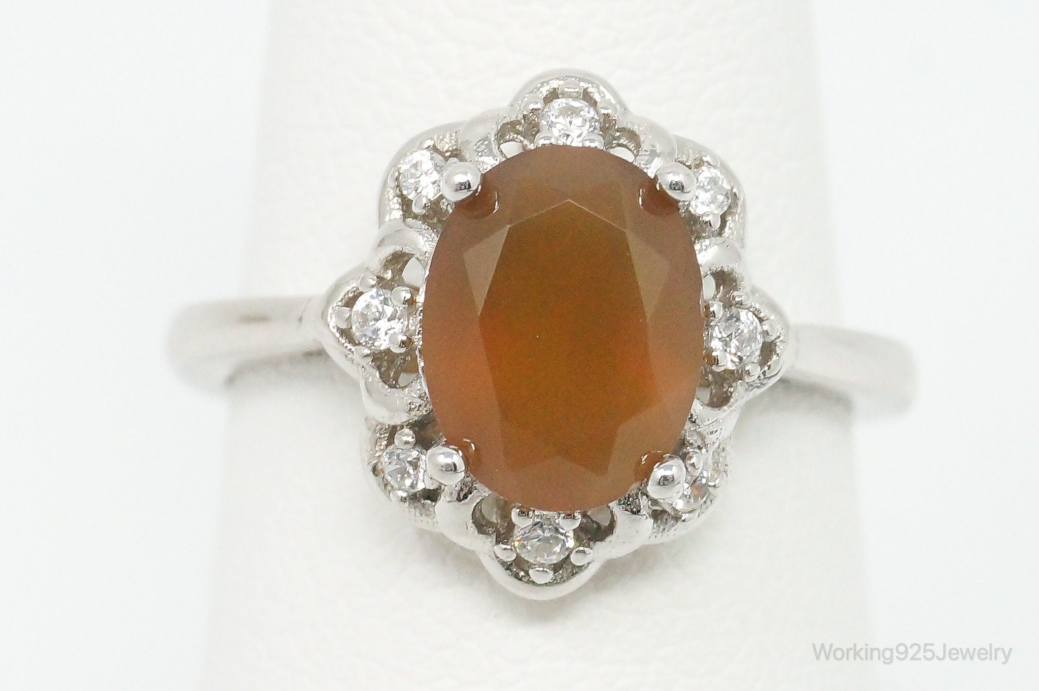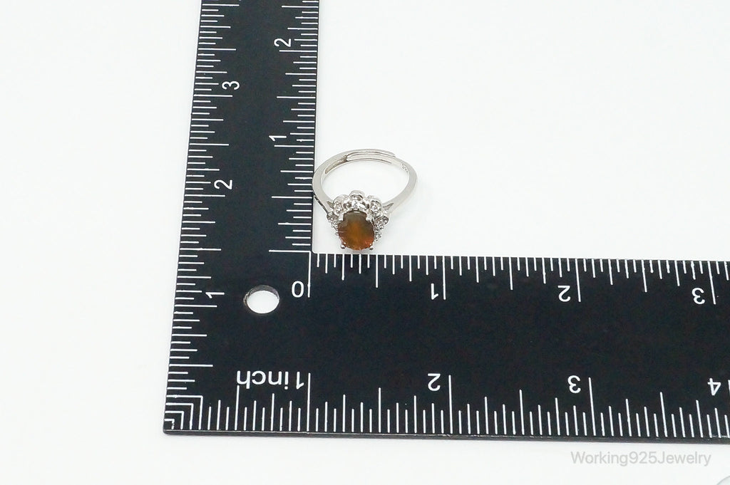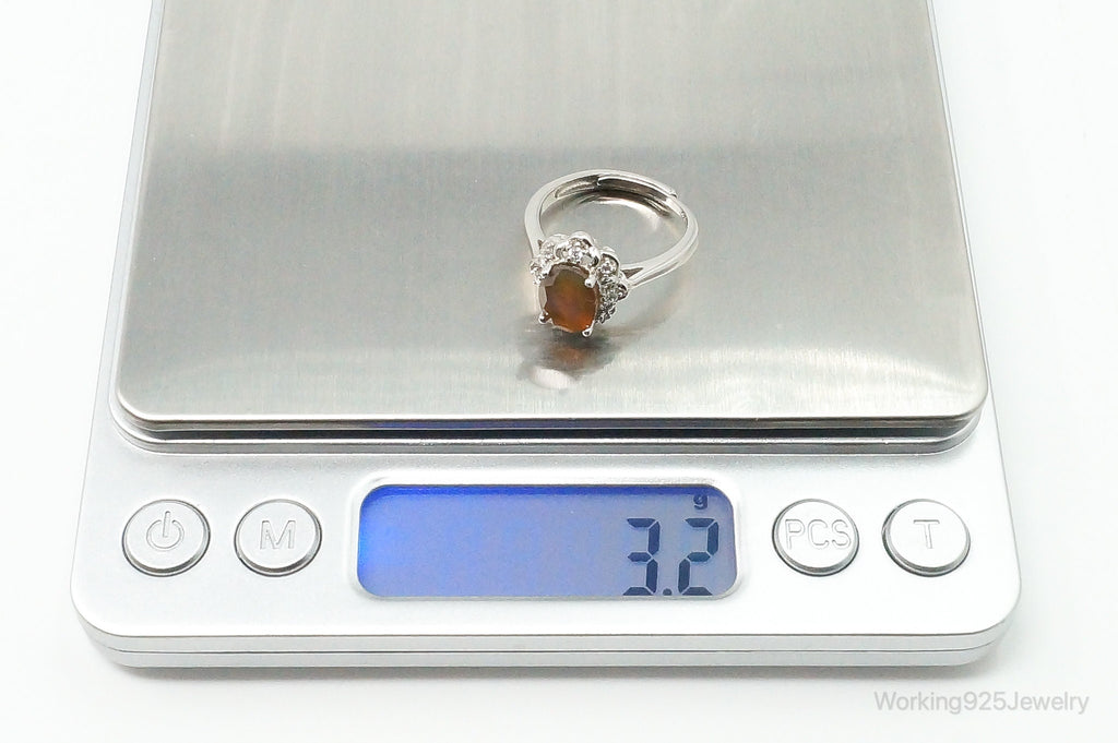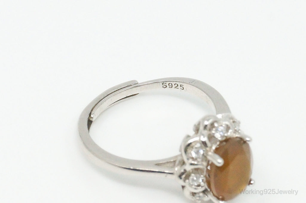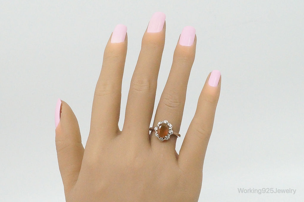 Carnelian Cubic Zirconia Sterling Silver Ring - Size 6.5 Adjustable