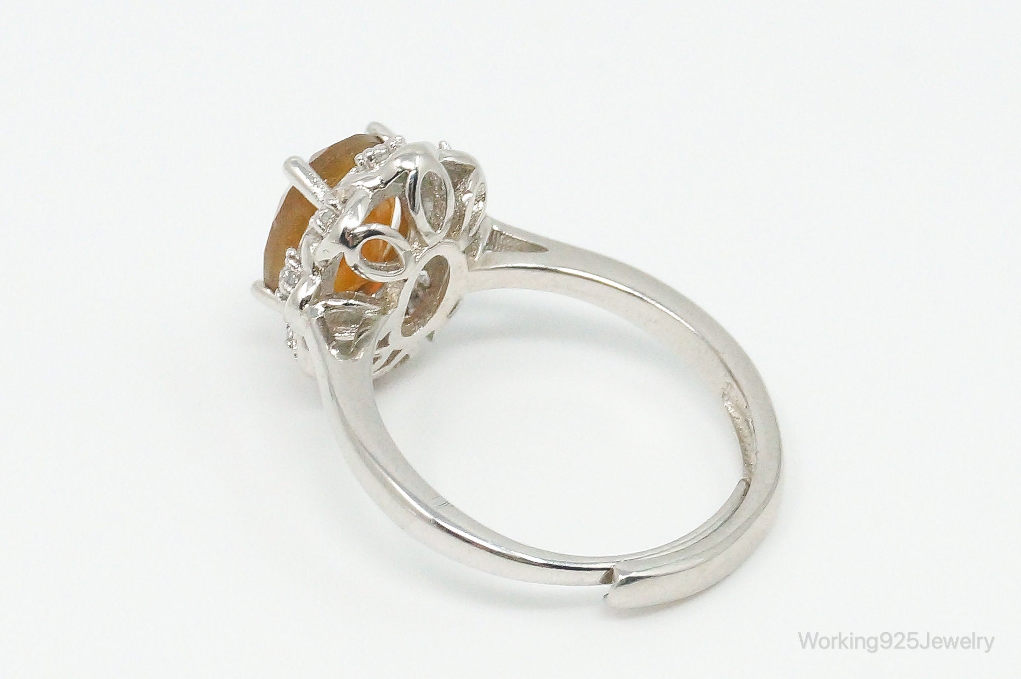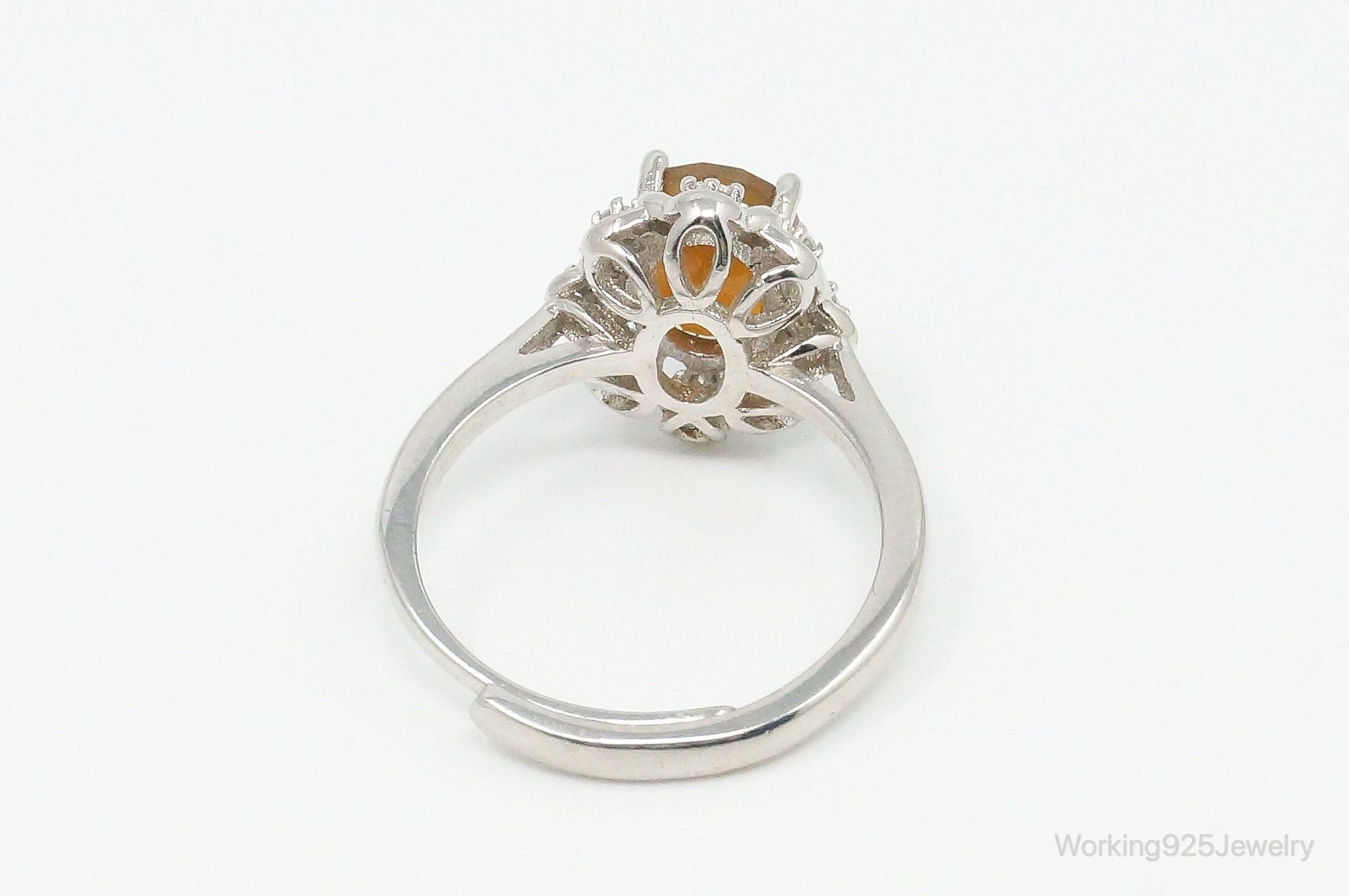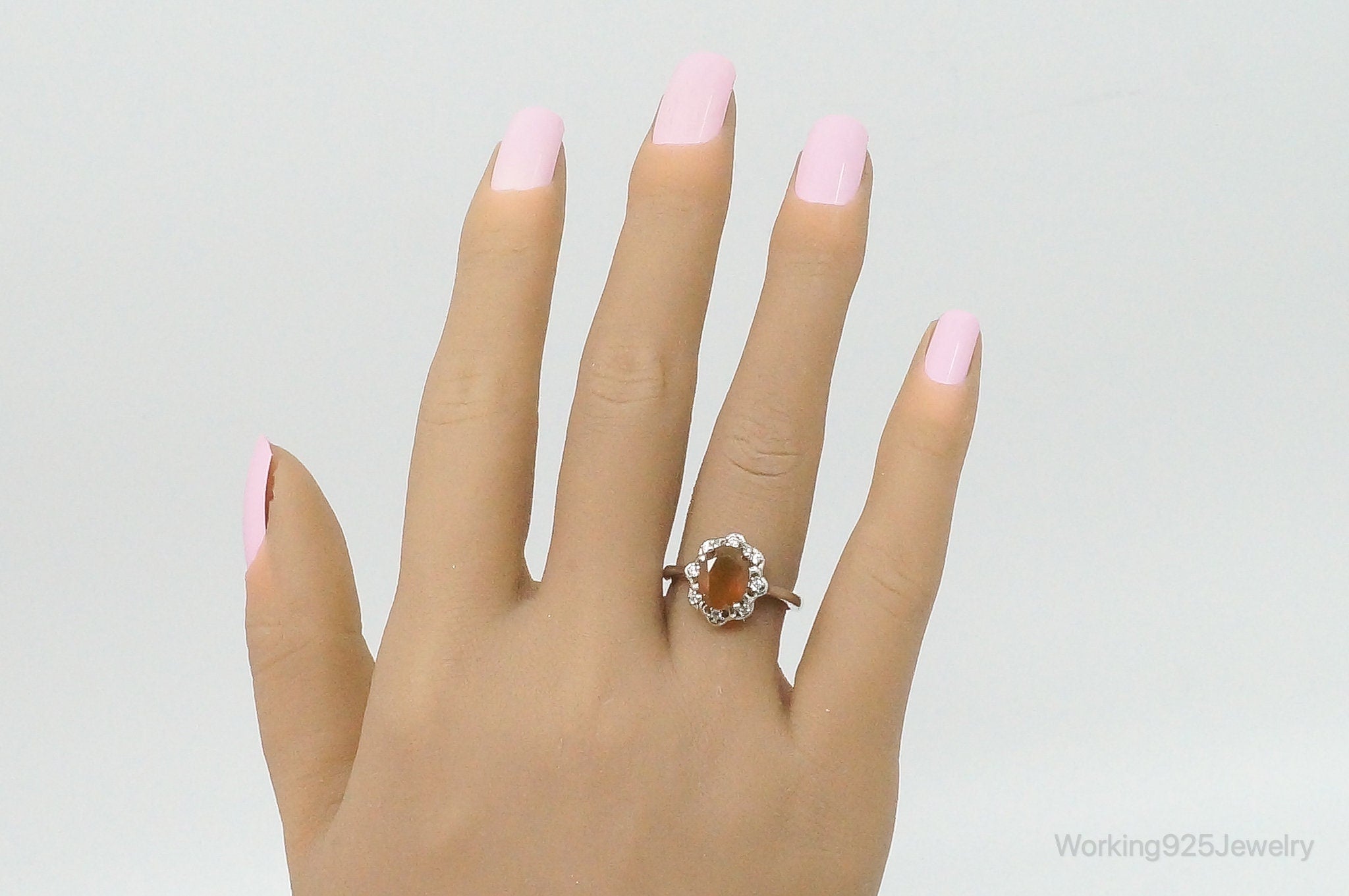 Carnelian Cubic Zirconia Sterling Silver Ring - Size 6.5 Adjustable