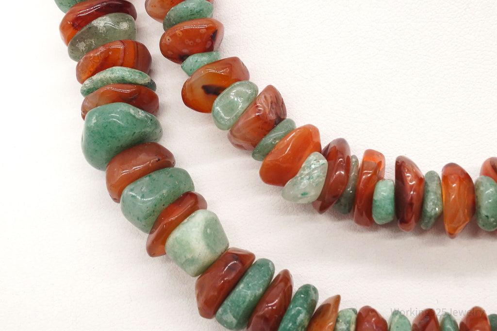 Chunky Vintage Aventurine Carnelian Beaded Necklace 30"