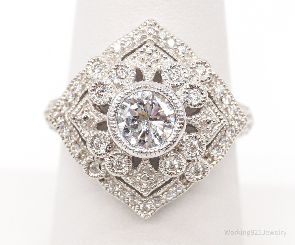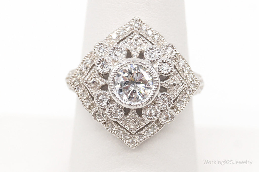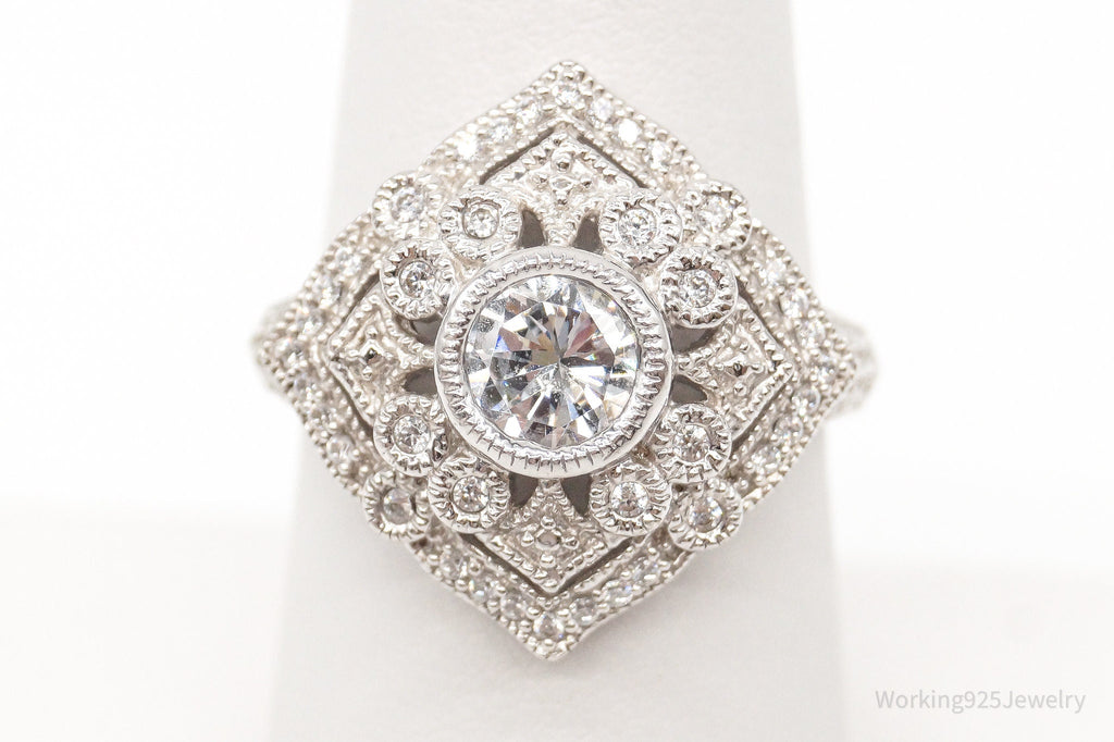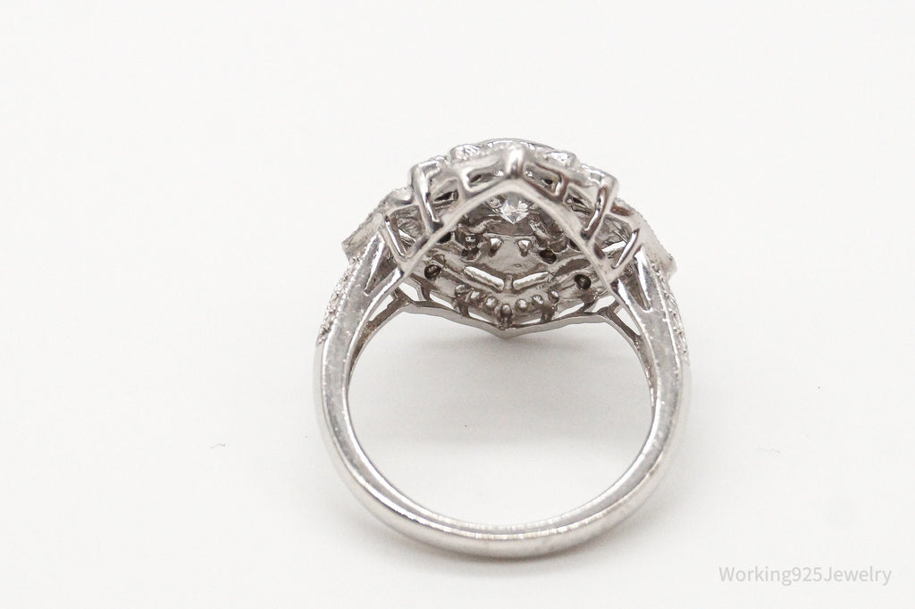 Cubic Zirconia Art Deco Sterling Silver Ring - Size 7