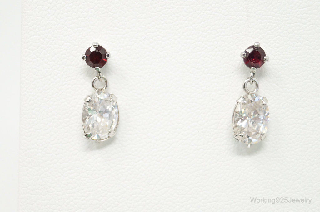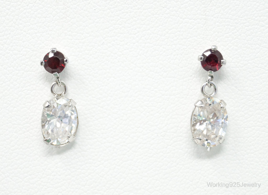 Cubic Zirconia Garnet Sterling Silver Stud Post Earrings