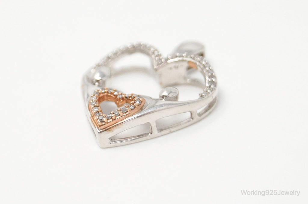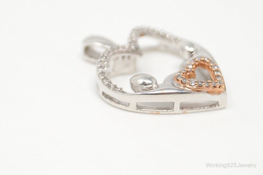 Cubic Zirconia Rose Gold Vermeil Sterling Silver Heart Necklace Pendant