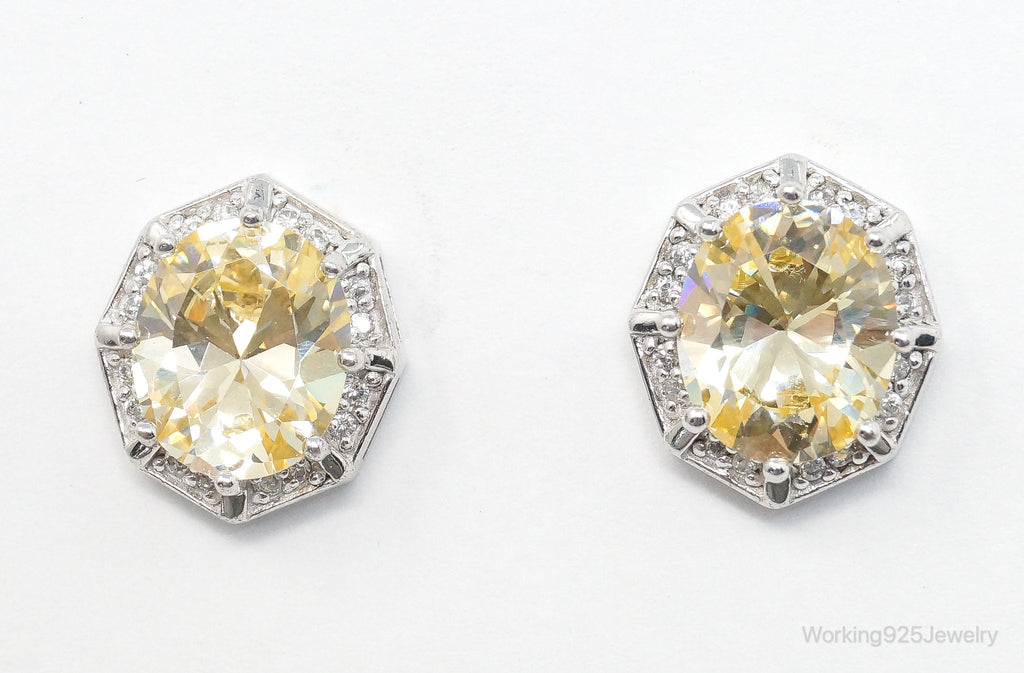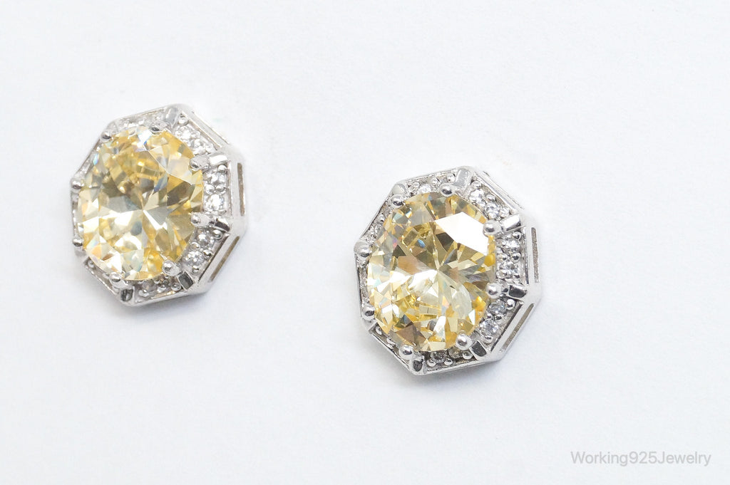 Designer ADI Large Citrine Cubic Zirconia Sterling Silver Earrings