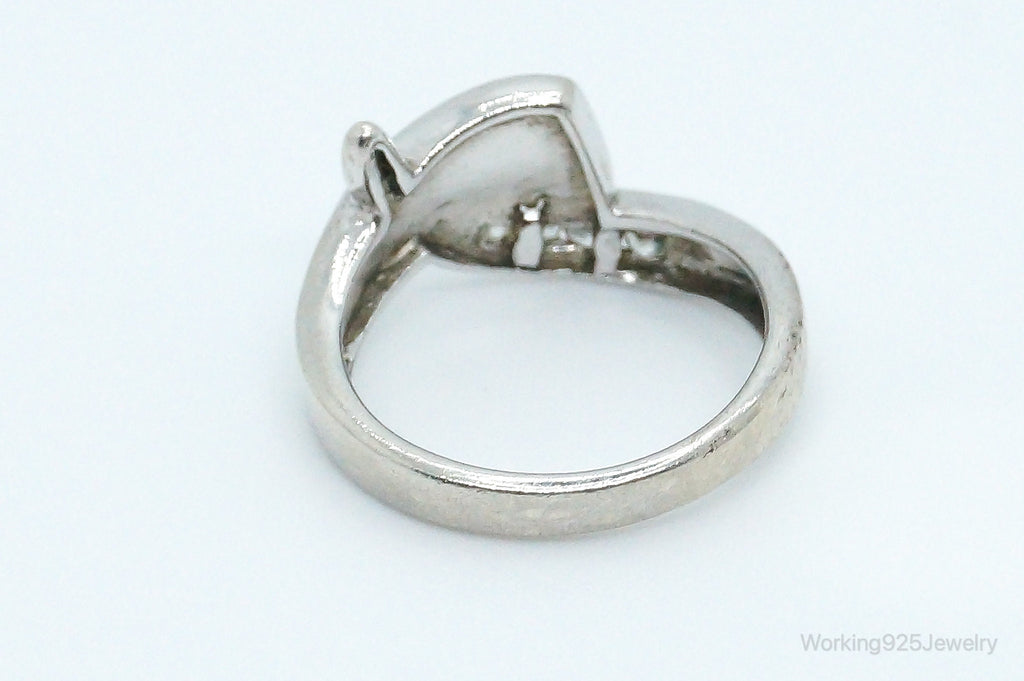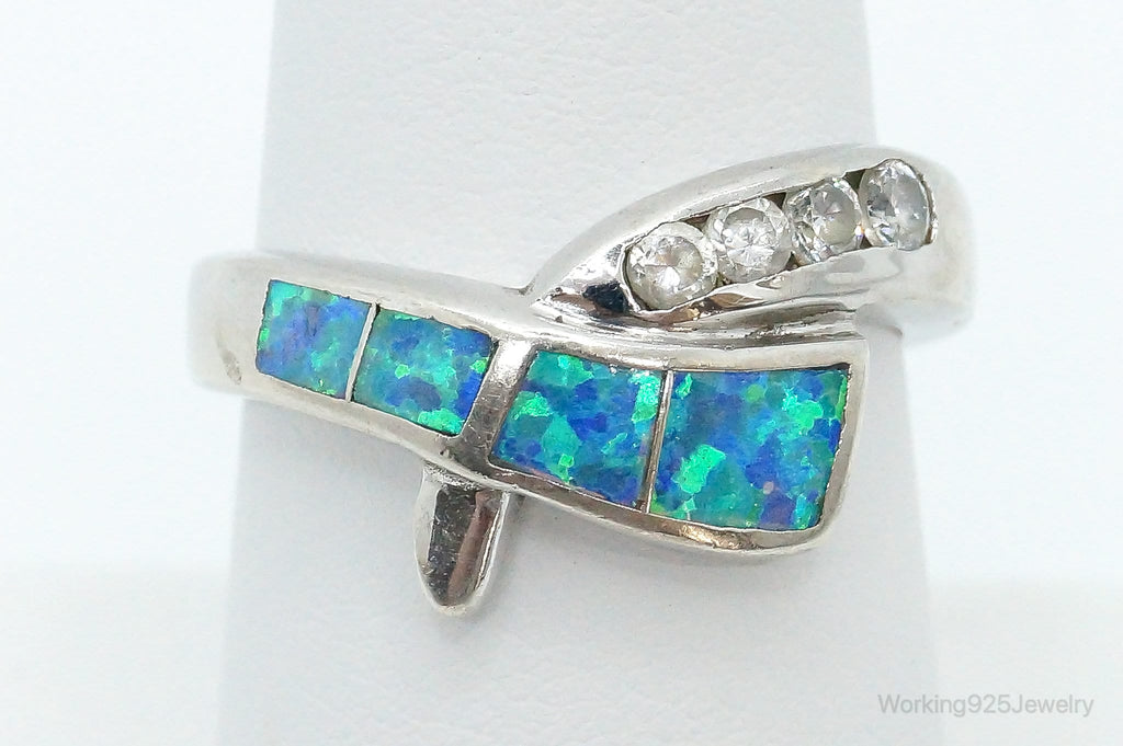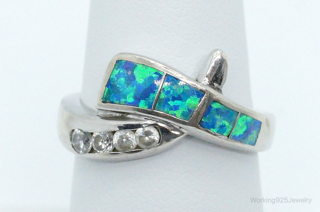 Designer AK Cubic Zirconia Opal Sterling Silver Ring - Size 7