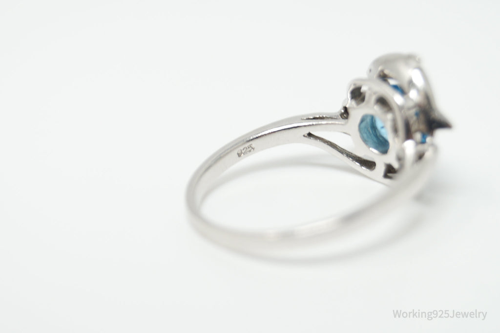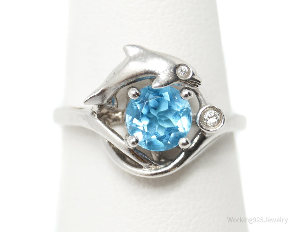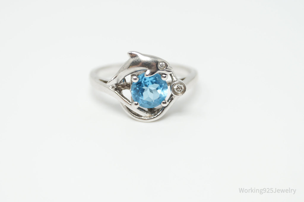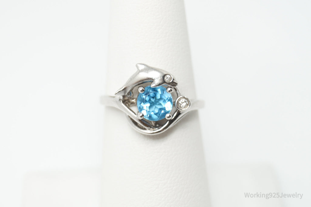 Designer ARTISTICA Diamond Blue Topaz Dolphin Sterling Silver Ring - Sz 6.5