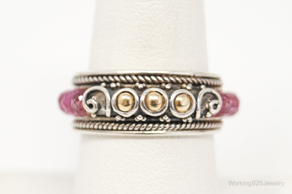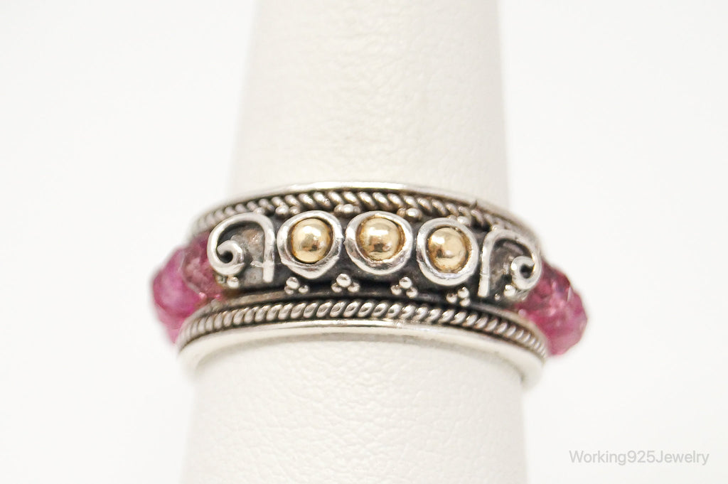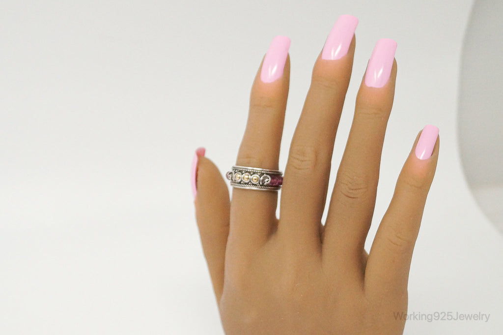 Designer BA Suarti 18K Gold Amethyst Sterling Silver Ring Size 8.25