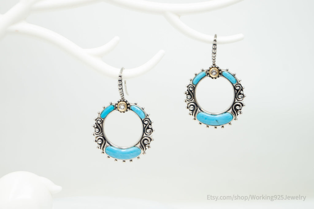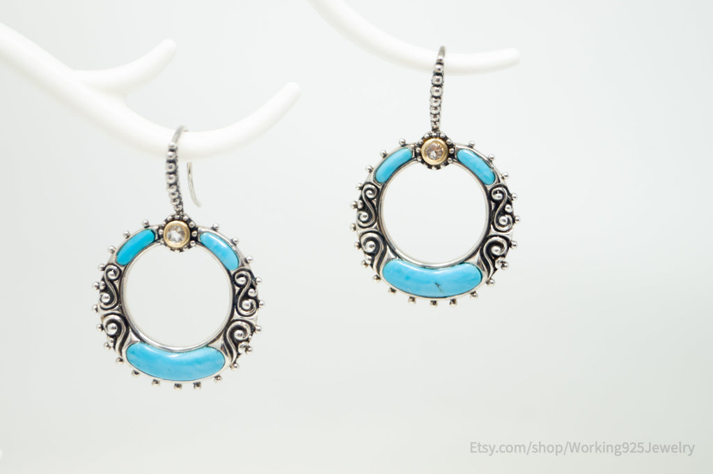Designer Barbara Bixby Retired 18K Gold Diamond Sterling Silver Earrings