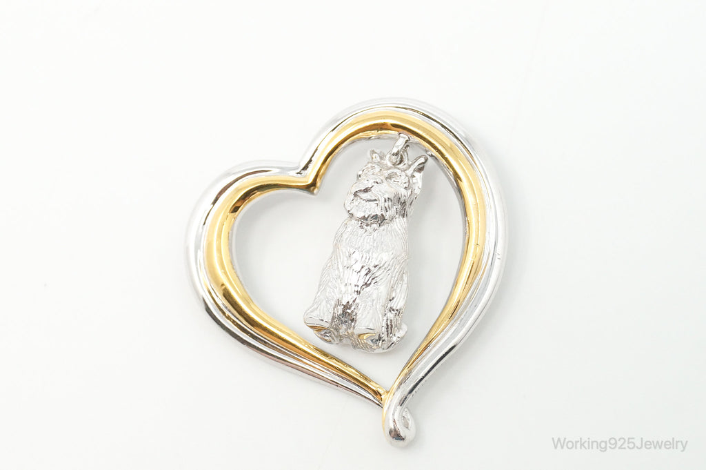 Designer BGE Gold Vermeil Schnauzer Heart Sterling Silver Pendant
