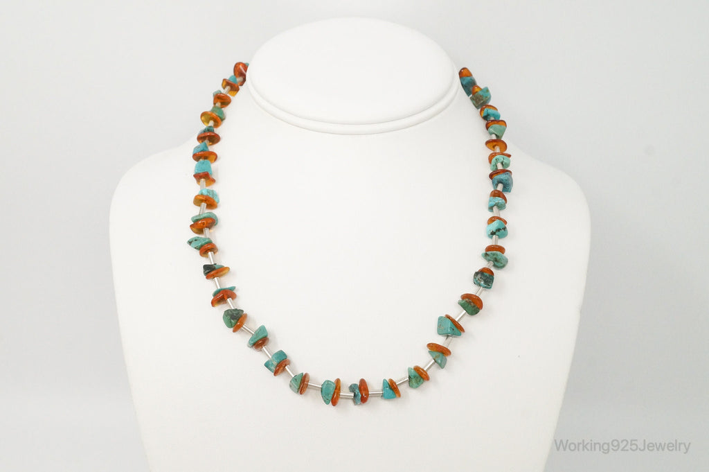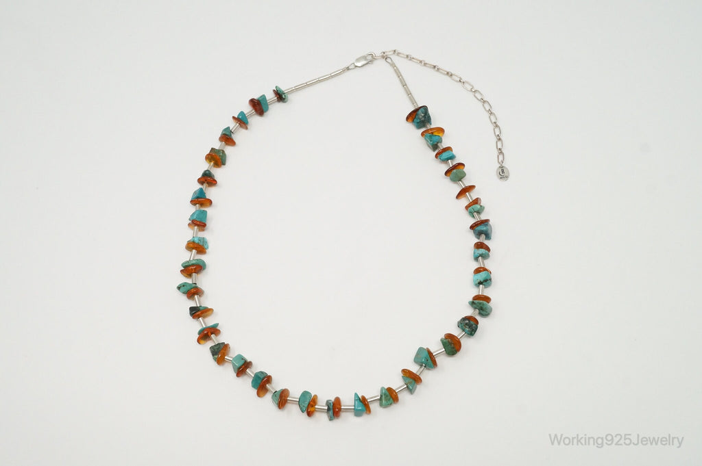 Designer Carolyn Pollack Relios Turquoise Amber Sterling Silver Necklace