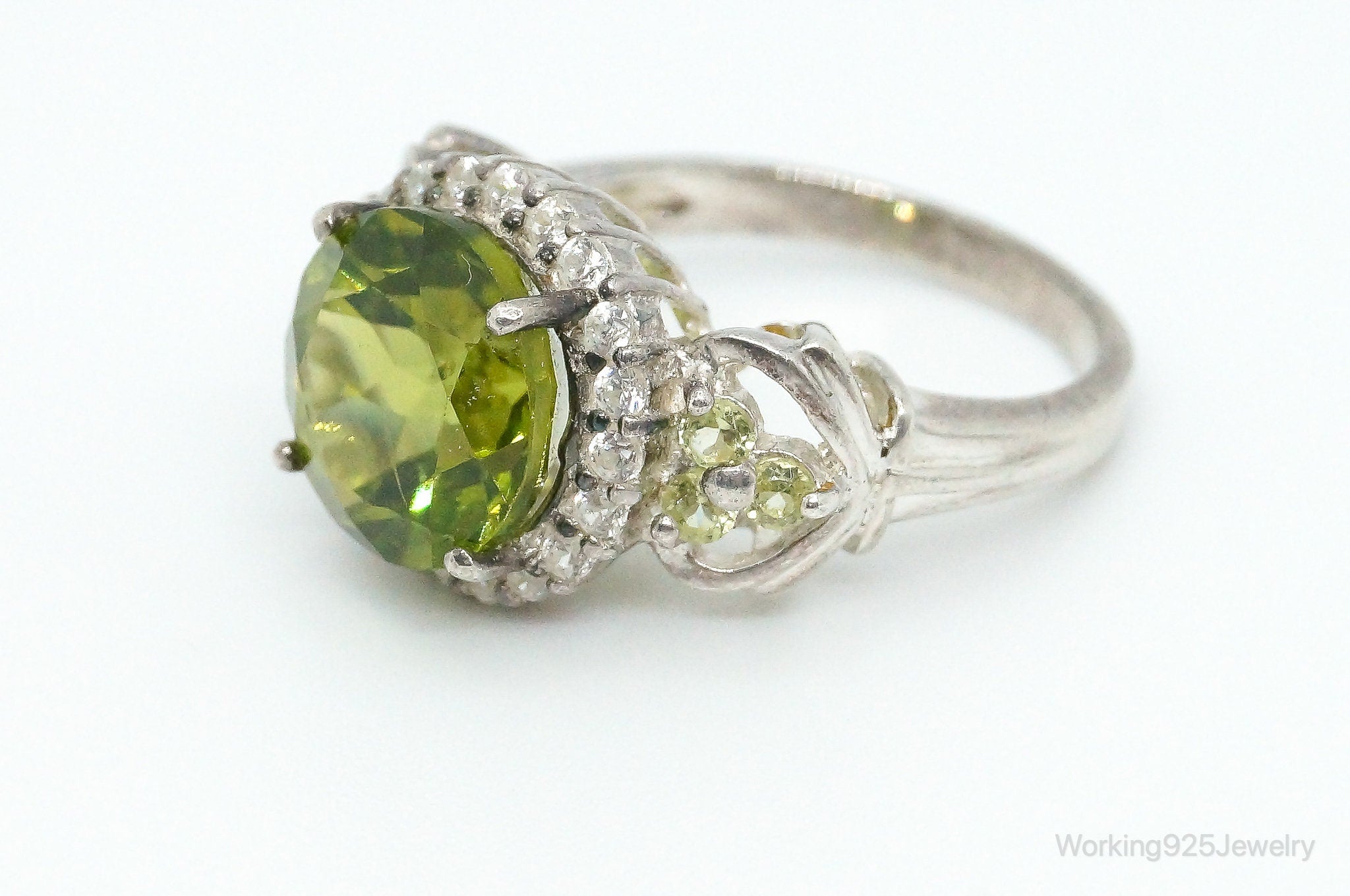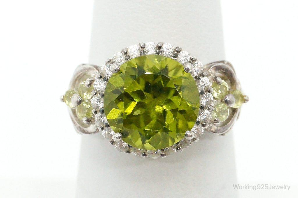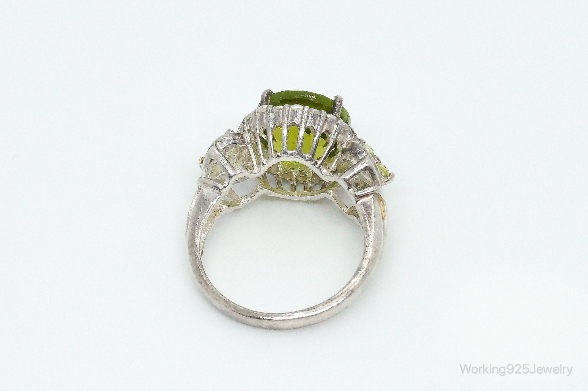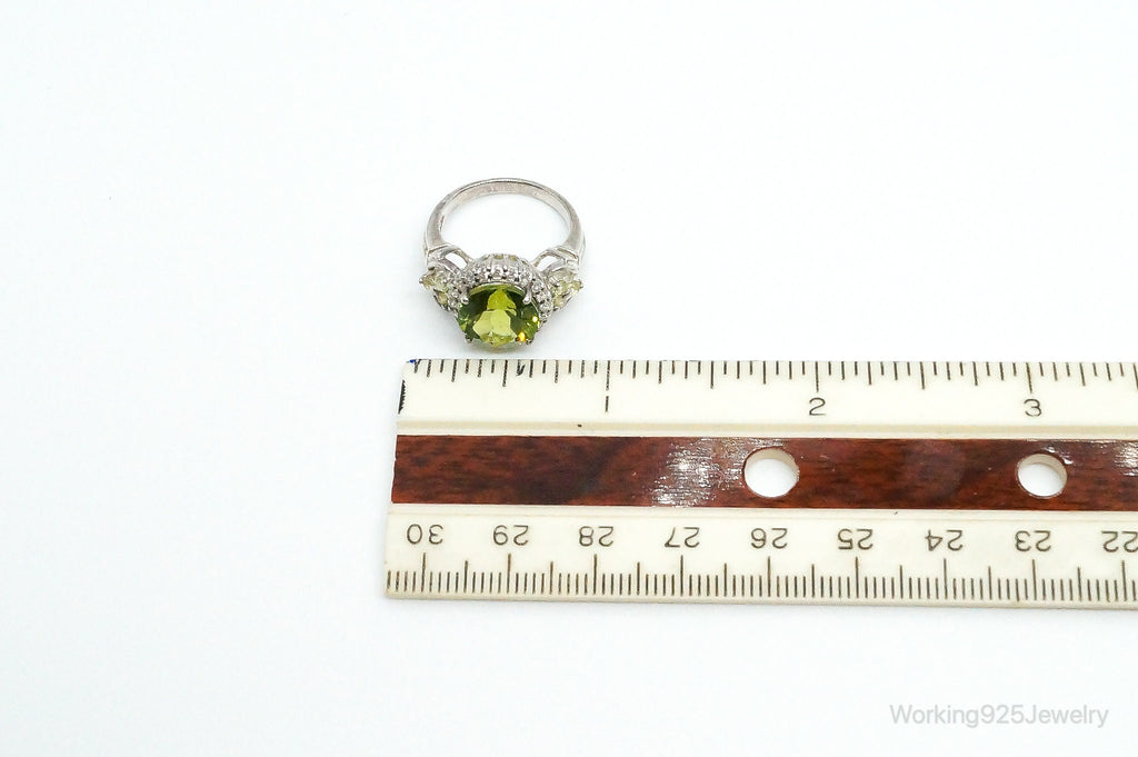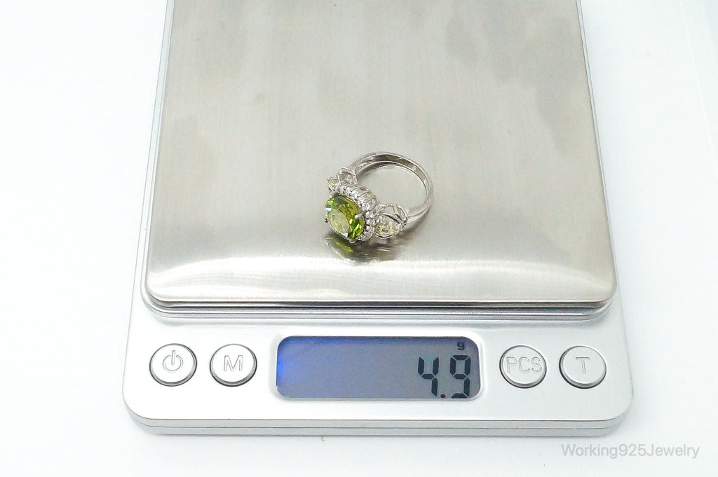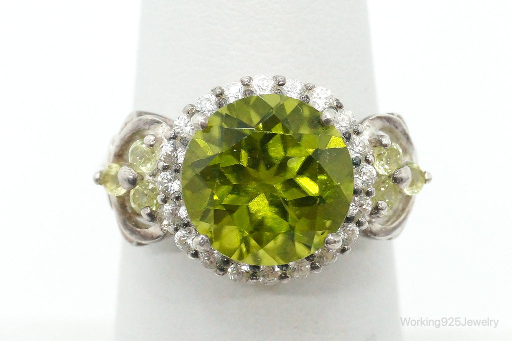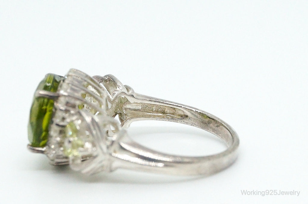 Designer KH Large Peridot Cubic Zirconia Sterling Silver Ring - Size 6