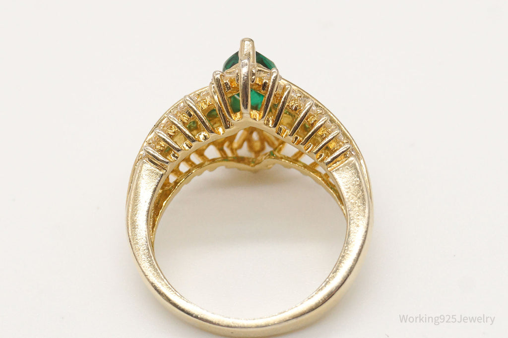 Designer Lab Emerald Cubic Zirconia Gold Vermeil Sterling Silver Ring Size 6