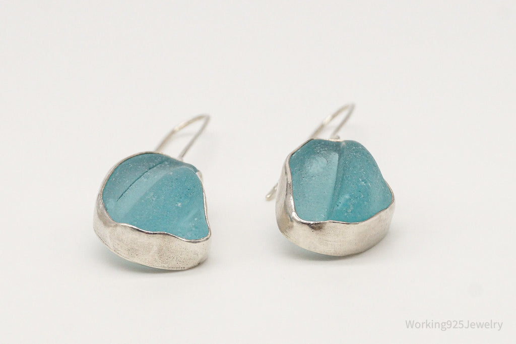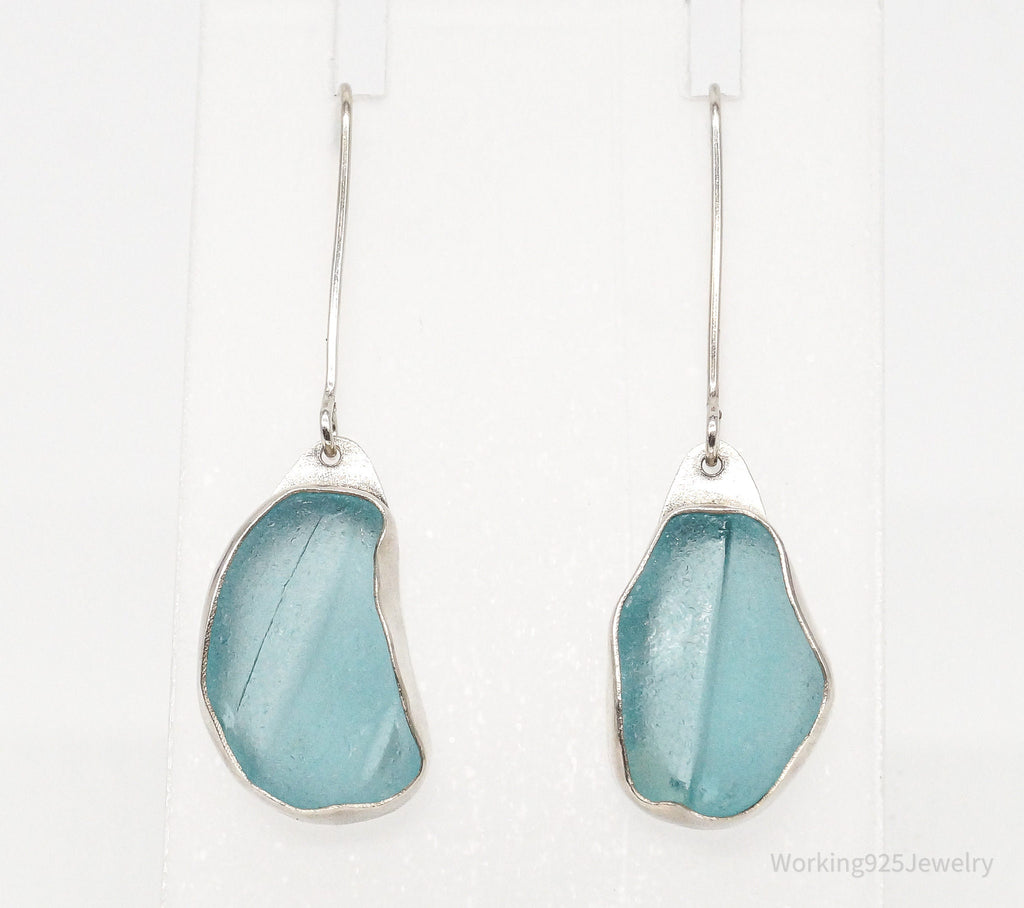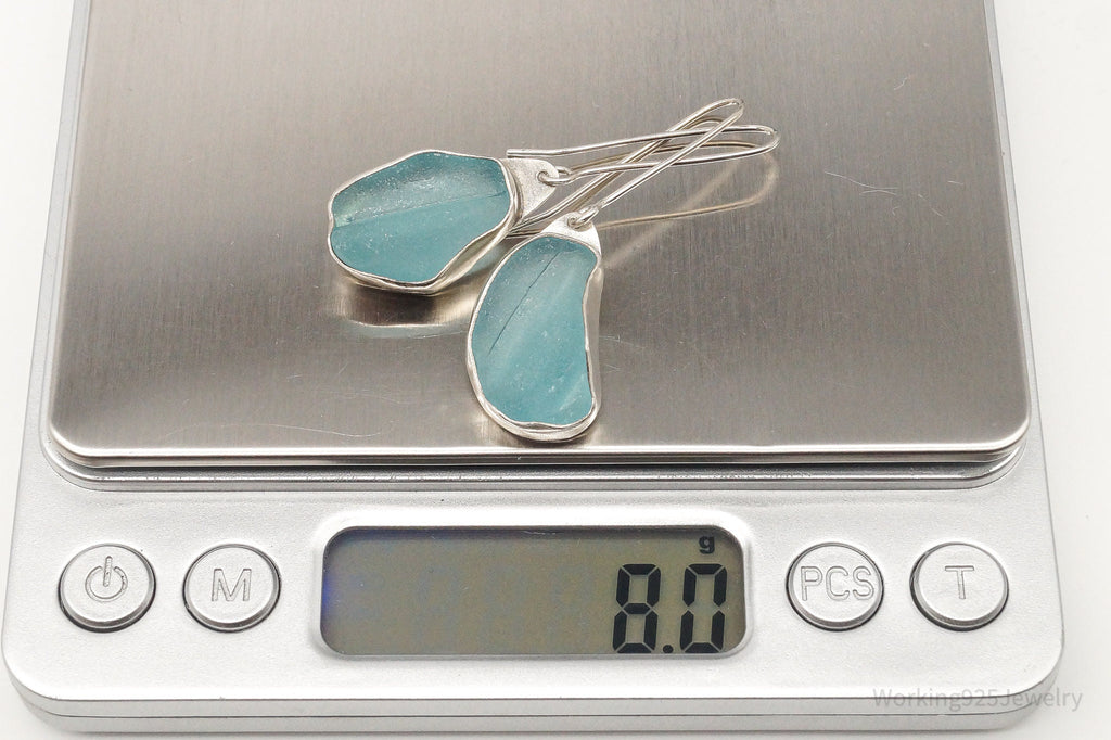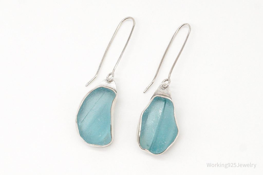 Designer LVO Blue Stone Dangle Sterling Silver Earrings