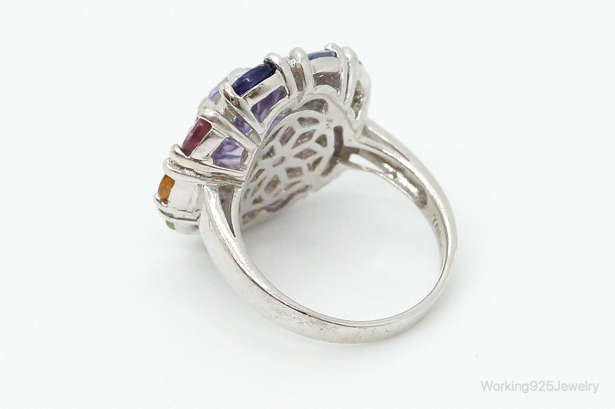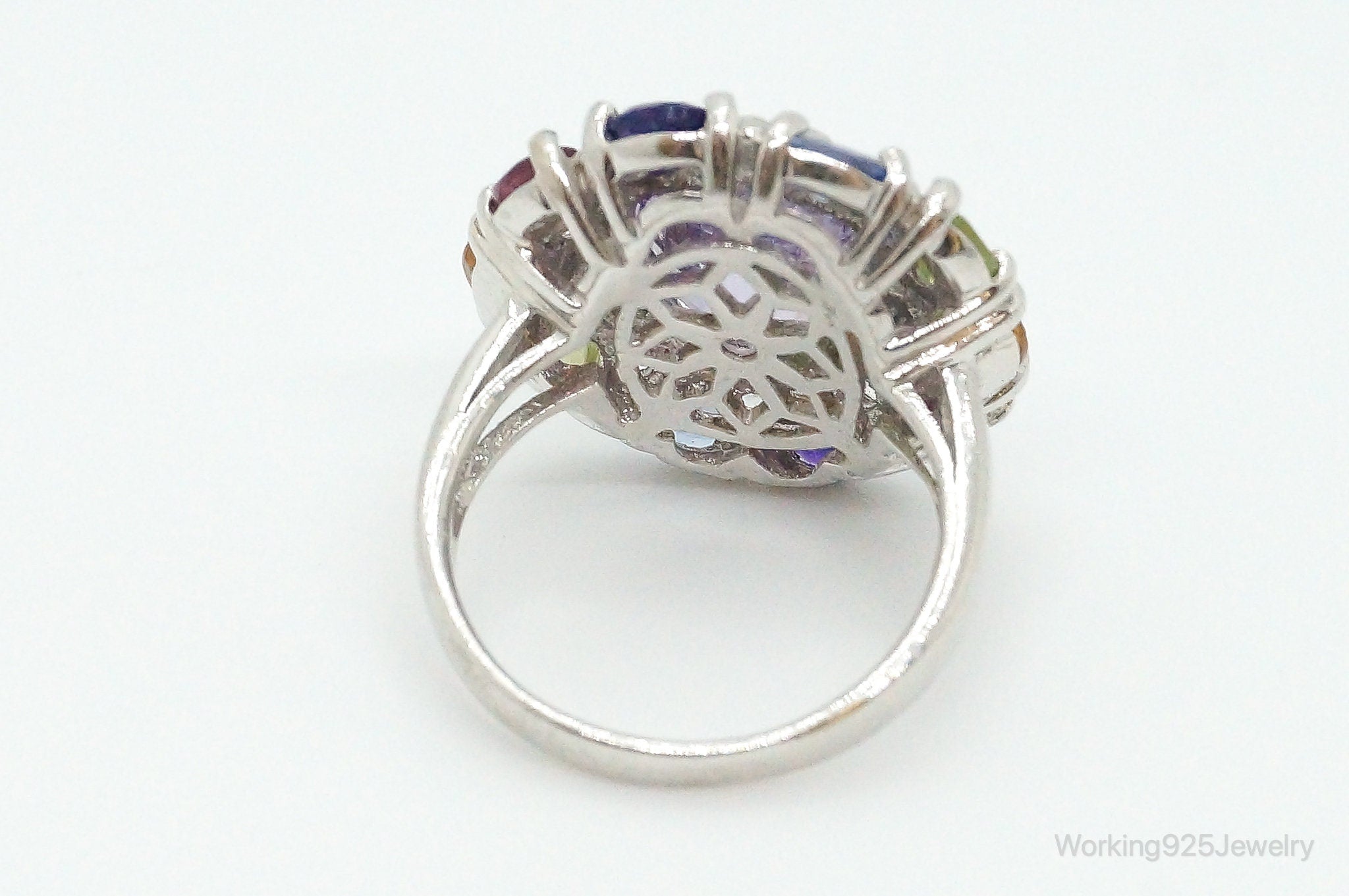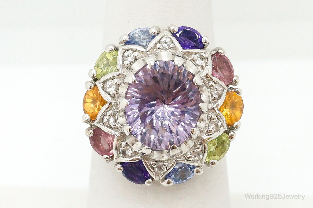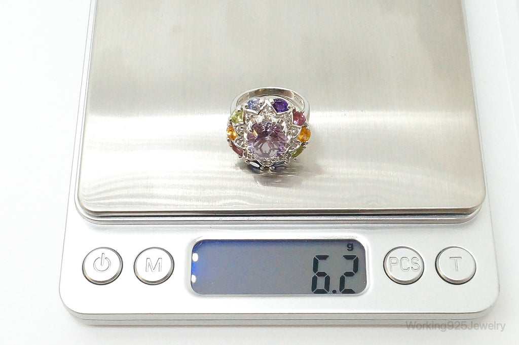 Designer Multi Gemstone Sterling Silver Ring - Size 6