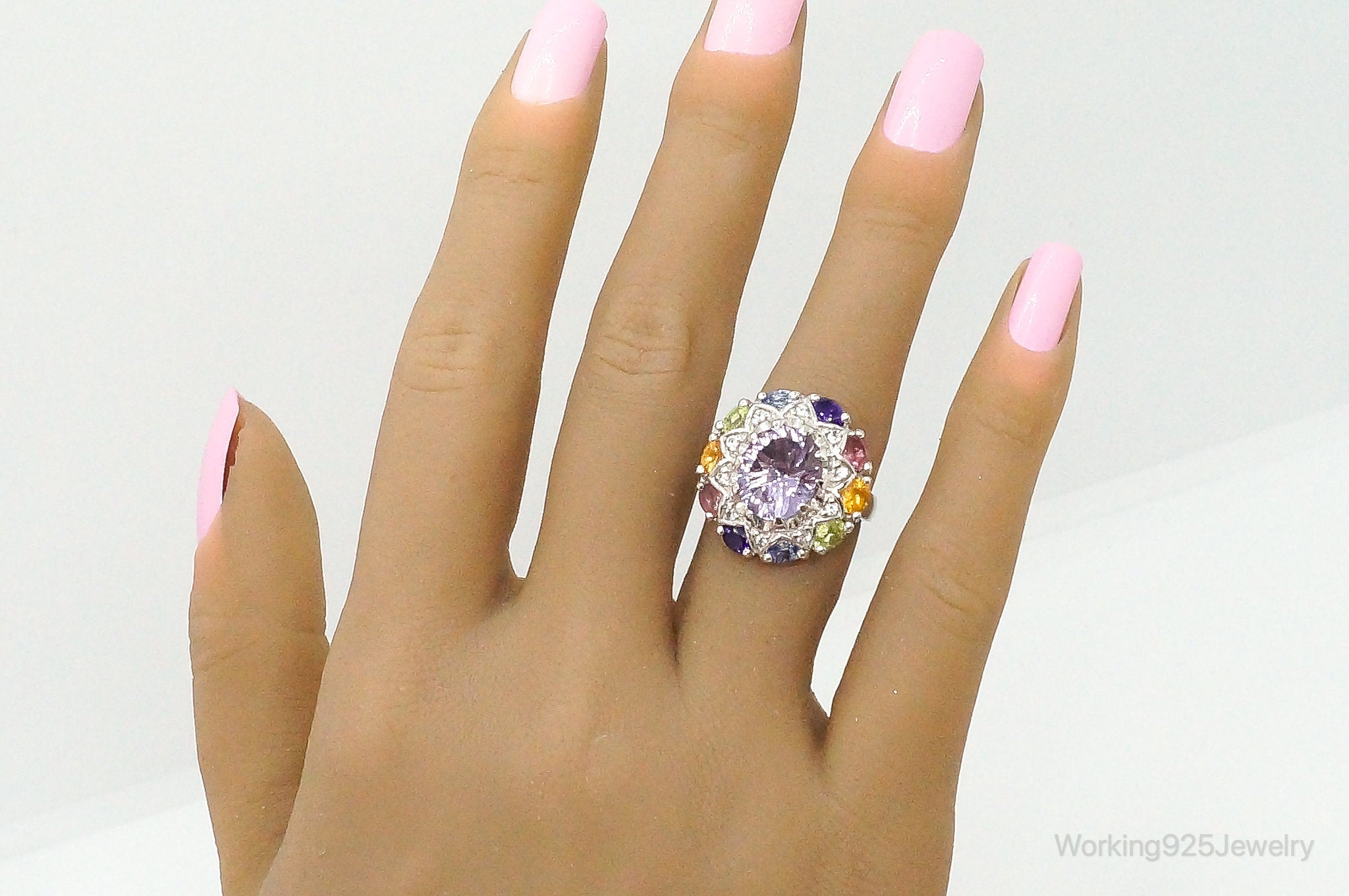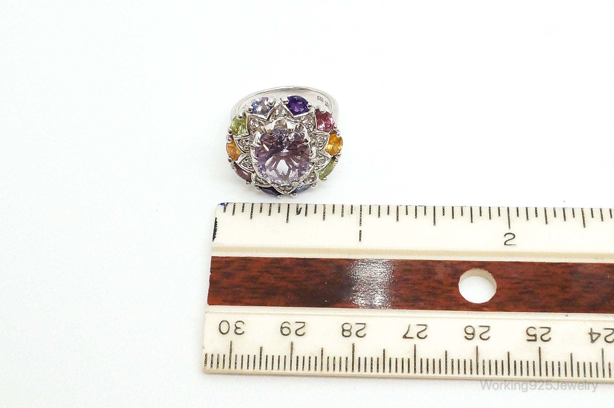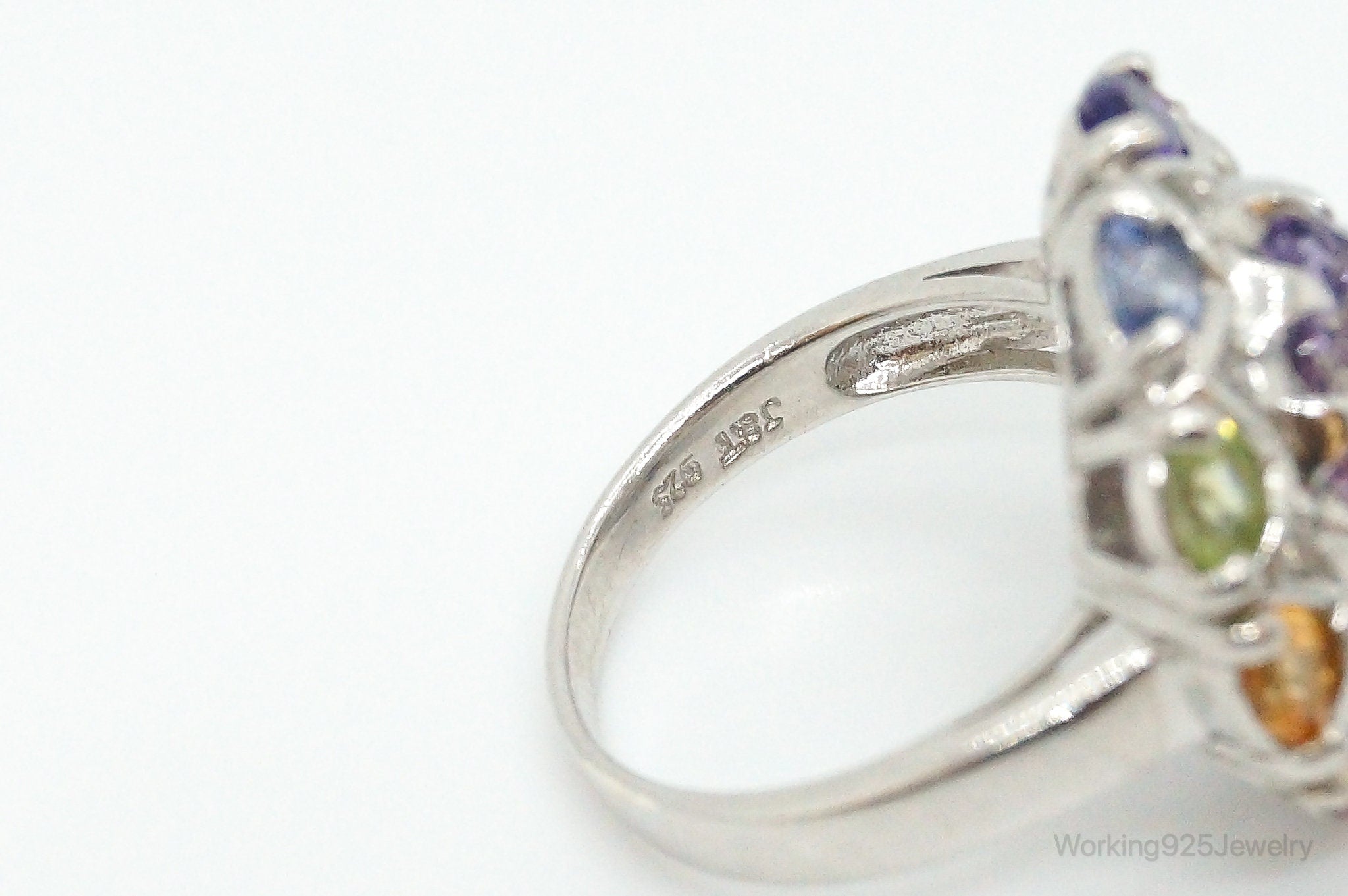 Designer Multi Gemstone Sterling Silver Ring - Size 6