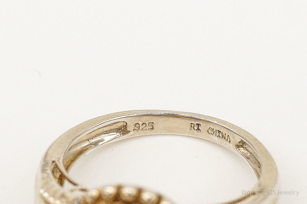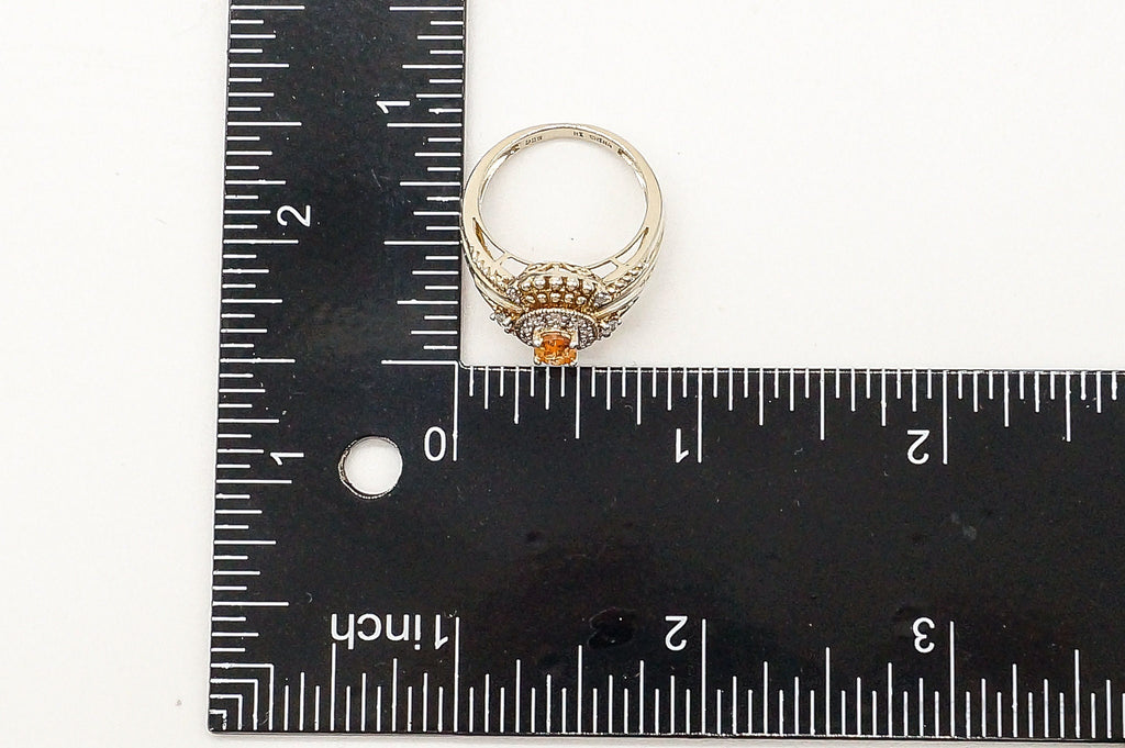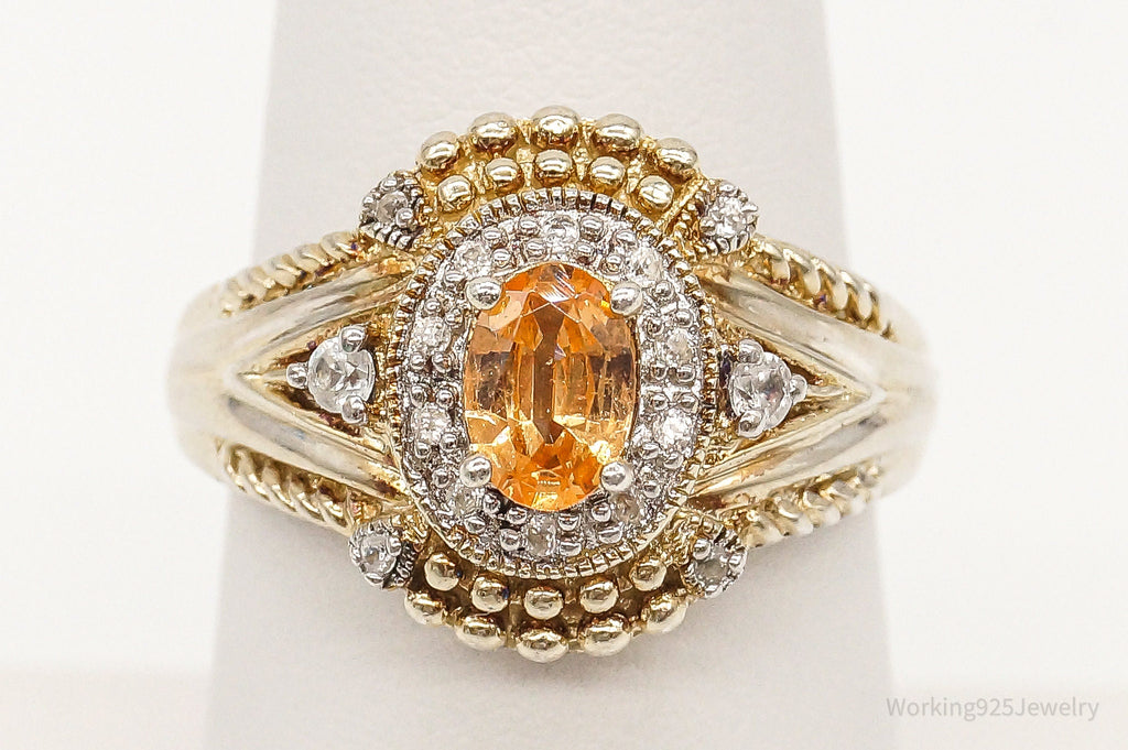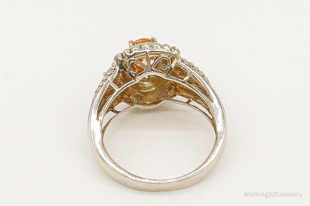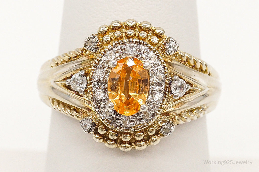 Designer Orange Topaz Cubic Zirconia Gold Vermeil Sterling Silver Ring - Size 7