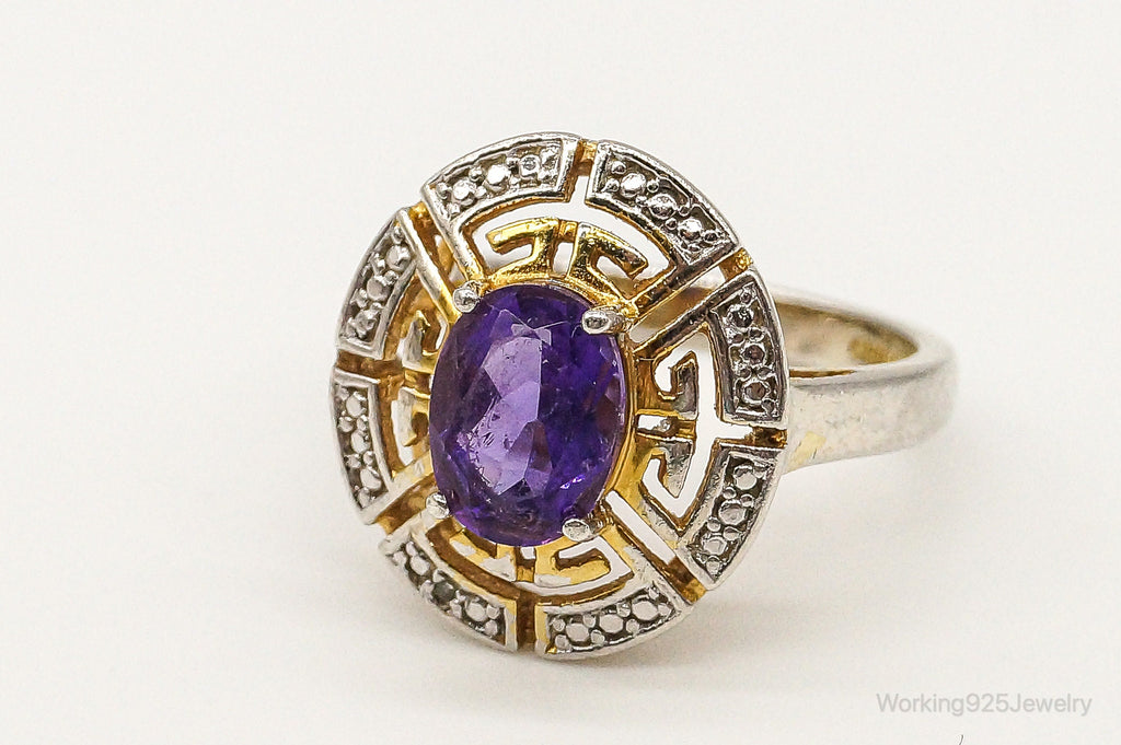 Designer PAJ Amethyst Gold Wash Sterling Silver Ring - Size 6