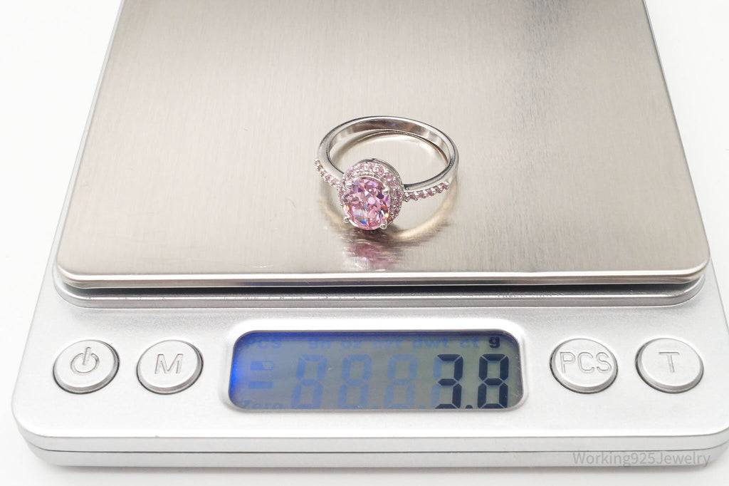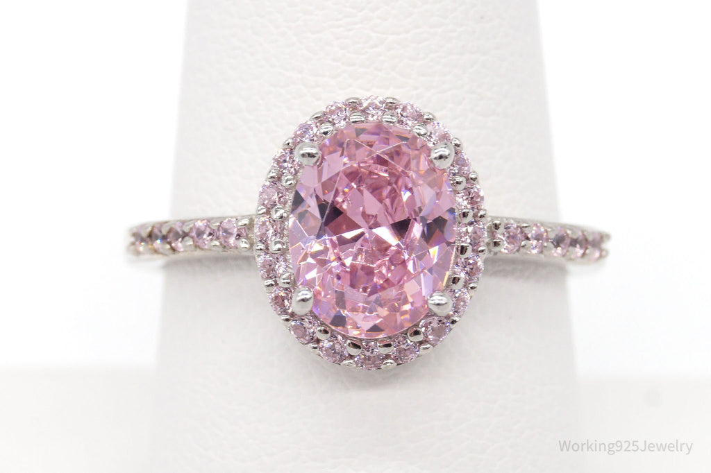 Designer Pink Cubic Zirconia Rhodium Over Sterling Silver Ring - Size 8.5