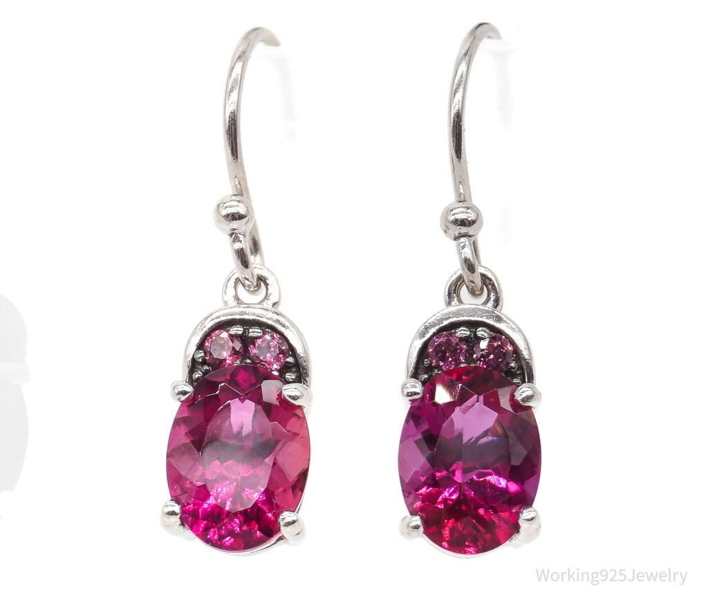 Designer Pink Tourmaline Pink CZ Rhodium Over Sterling Silver Earrings