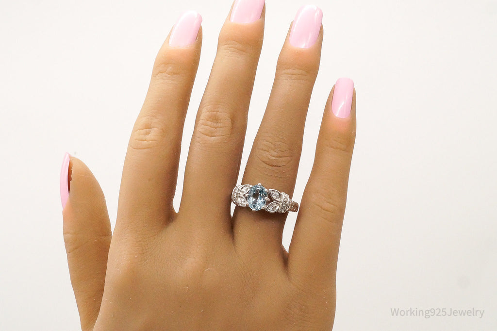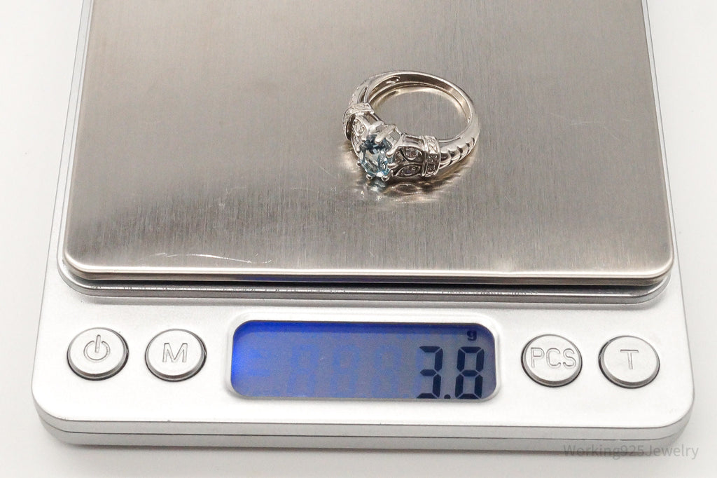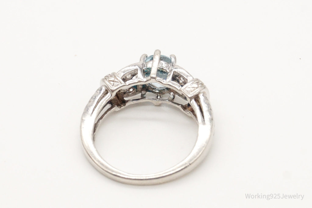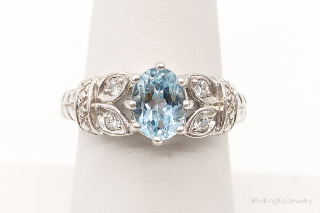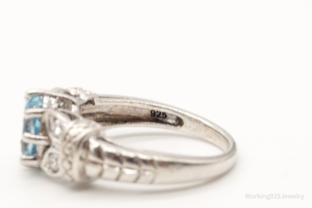 Designer RJ Blue Topaz Cubic Zirconia Sterling Silver Ring - Size 7