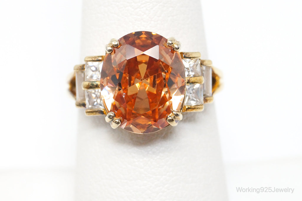 Designer Ross Simons Citrine CZ Gold Vermeil Sterling Silver Ring - Size 7