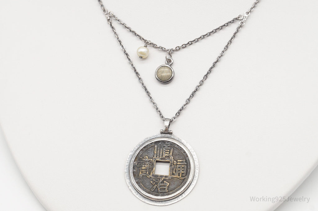 Designer Silpada Brass Chinese Coin Replica Sterling Silver Retired Necklace