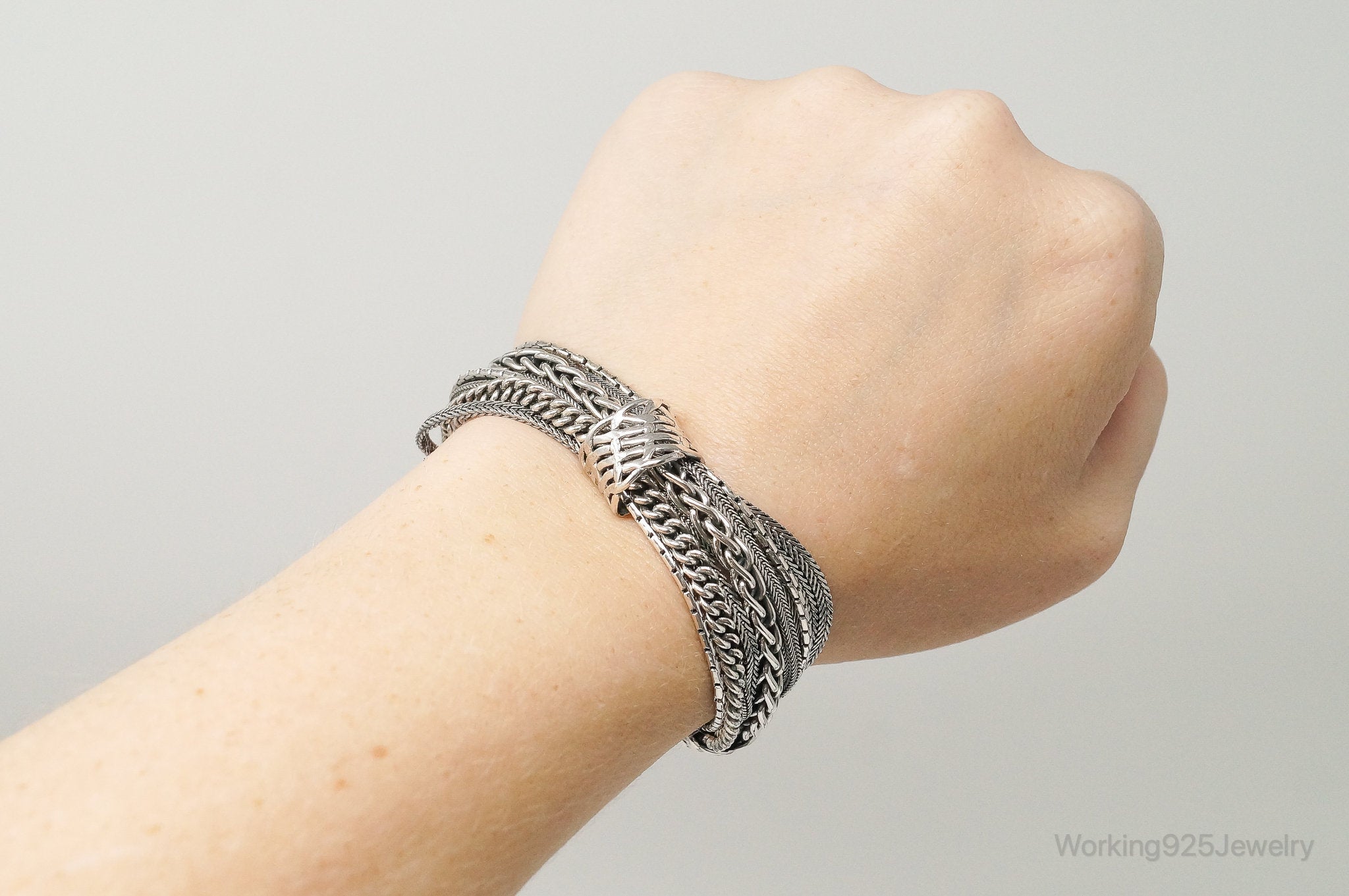 Designer Silpada Sterling Silver Balinese Style Chains Bracelet