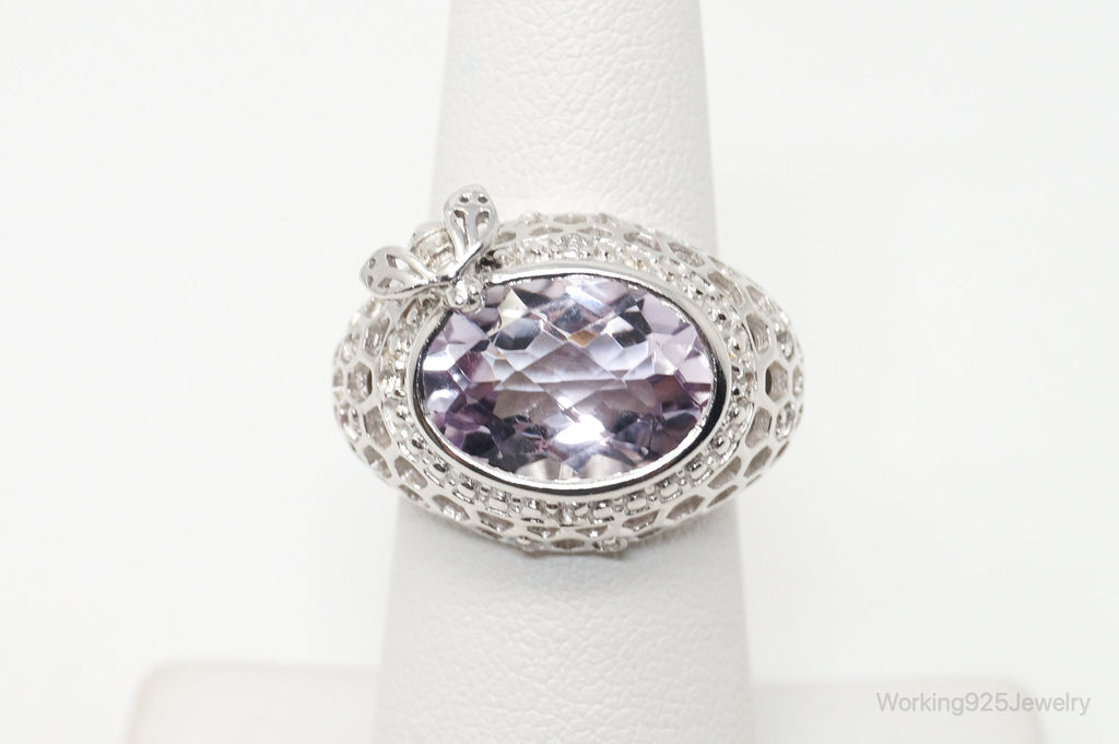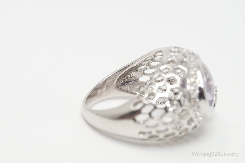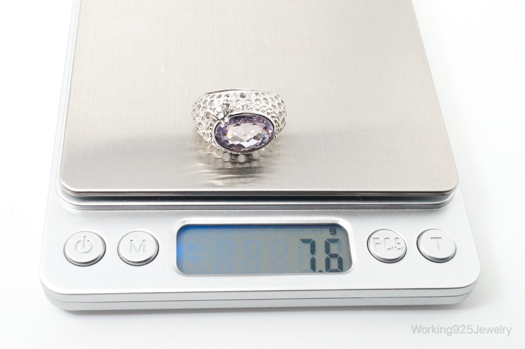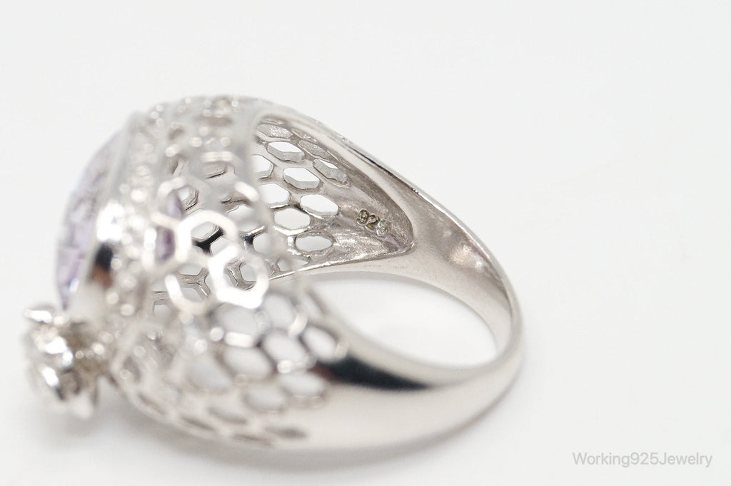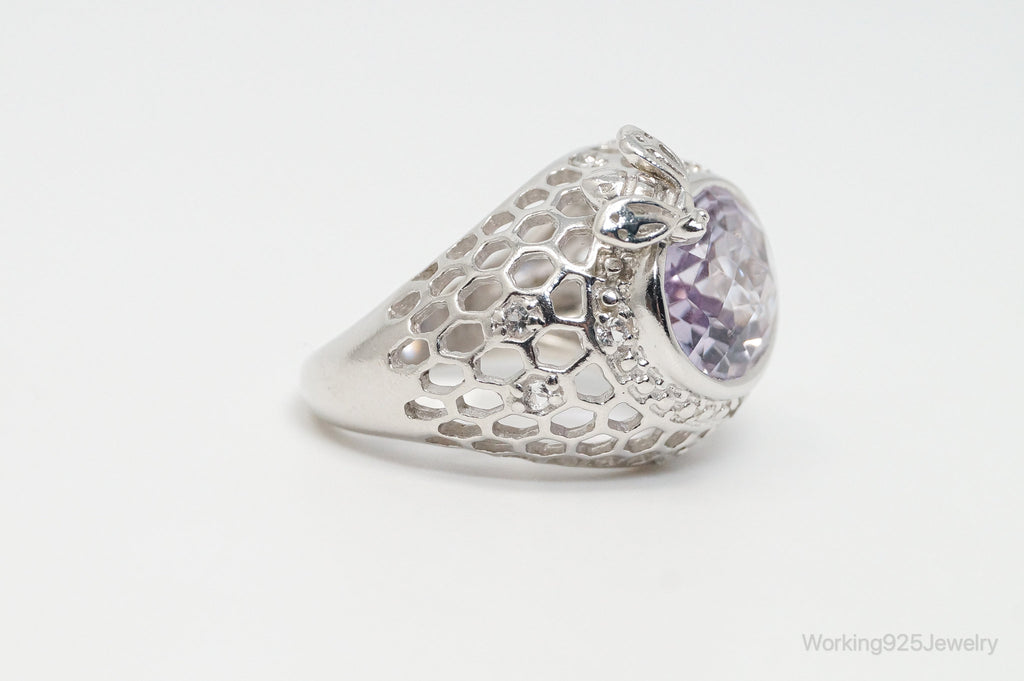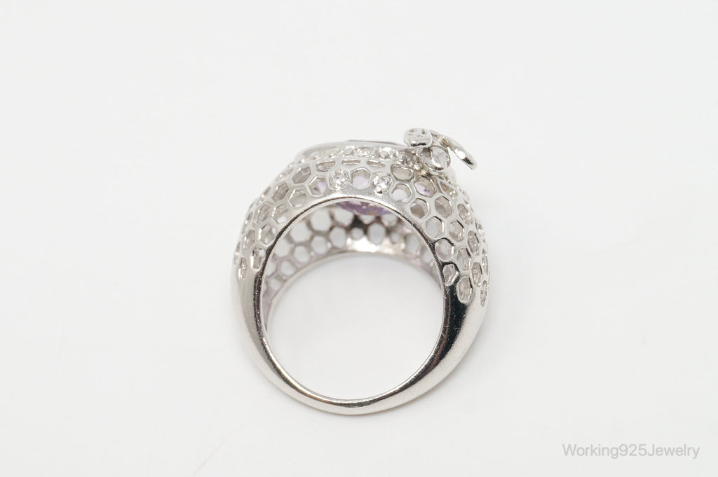 Designer TGGC Amethyst Honey Bee Hive CZ Sterling Silver Statement Ring SZ 5.75