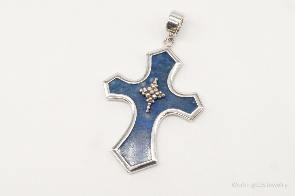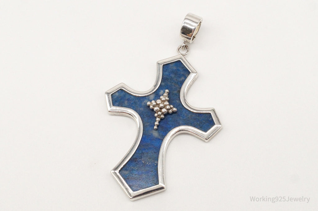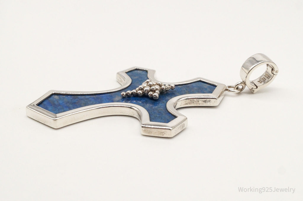 Designer Whitney Kelly Large Lapis Lazuli Cross Sterling Silver Pendant