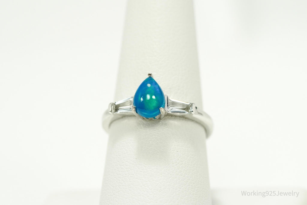 D'Joy Blue Opal & Cubic Zirconia Sterling Silver Ring - Size 8.25