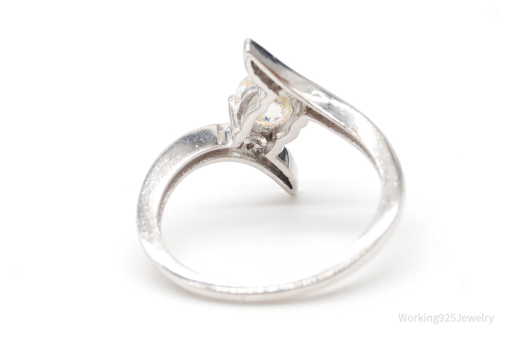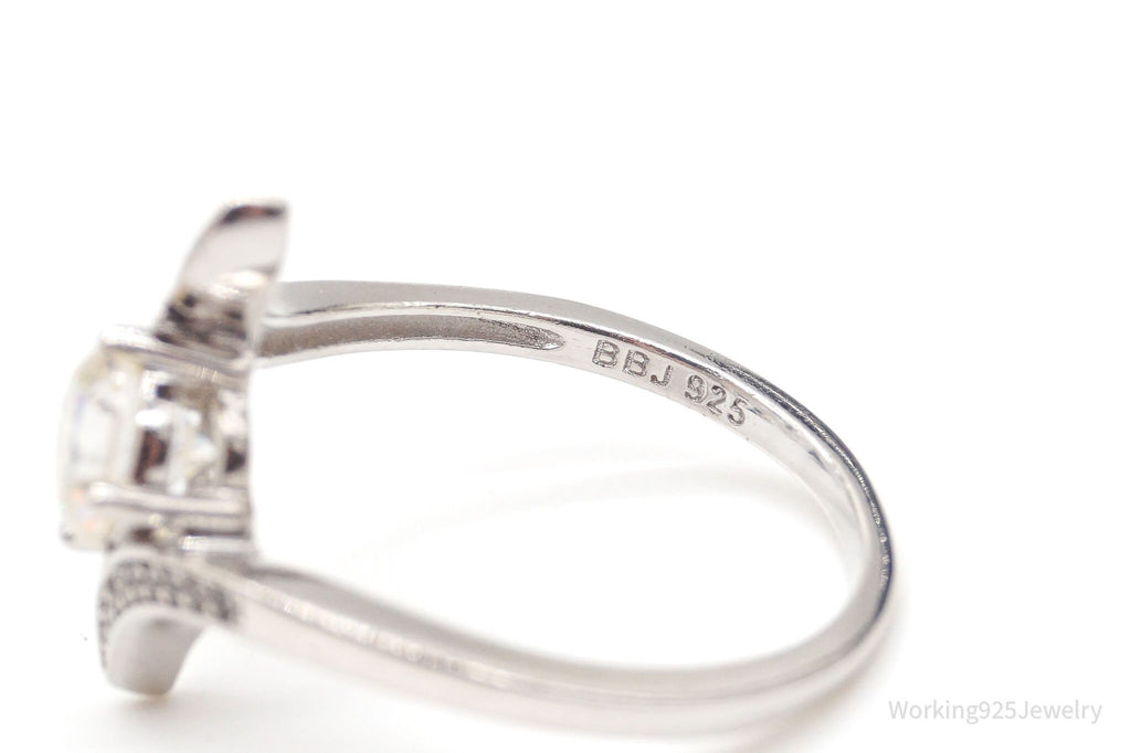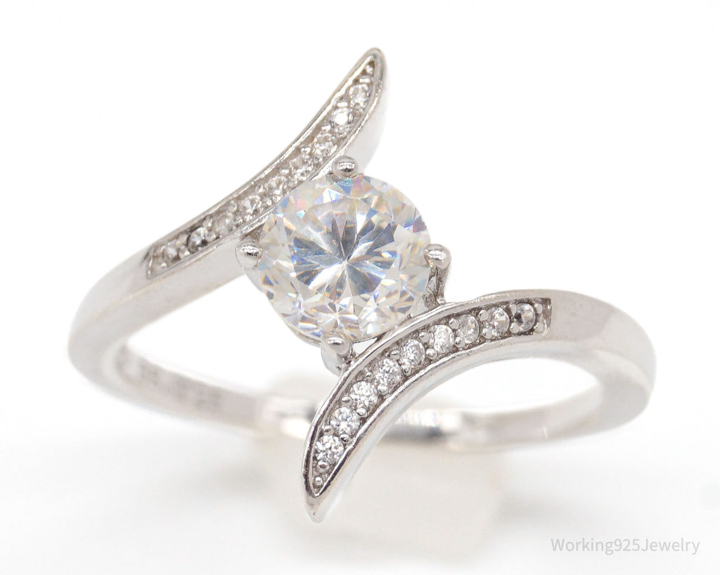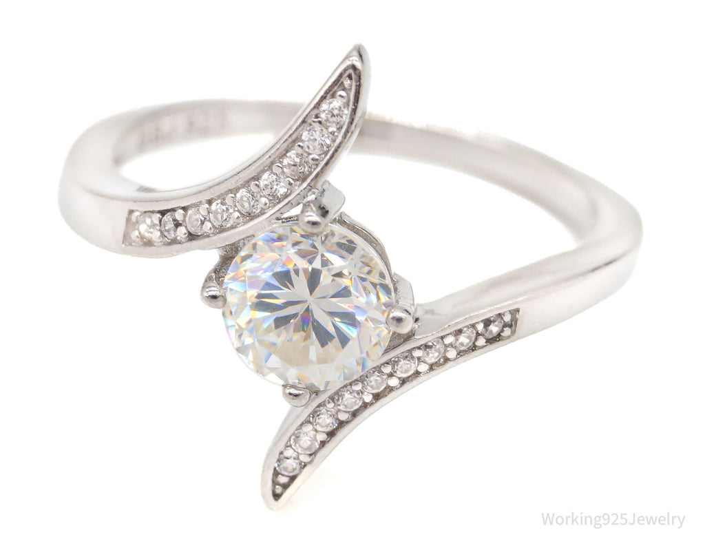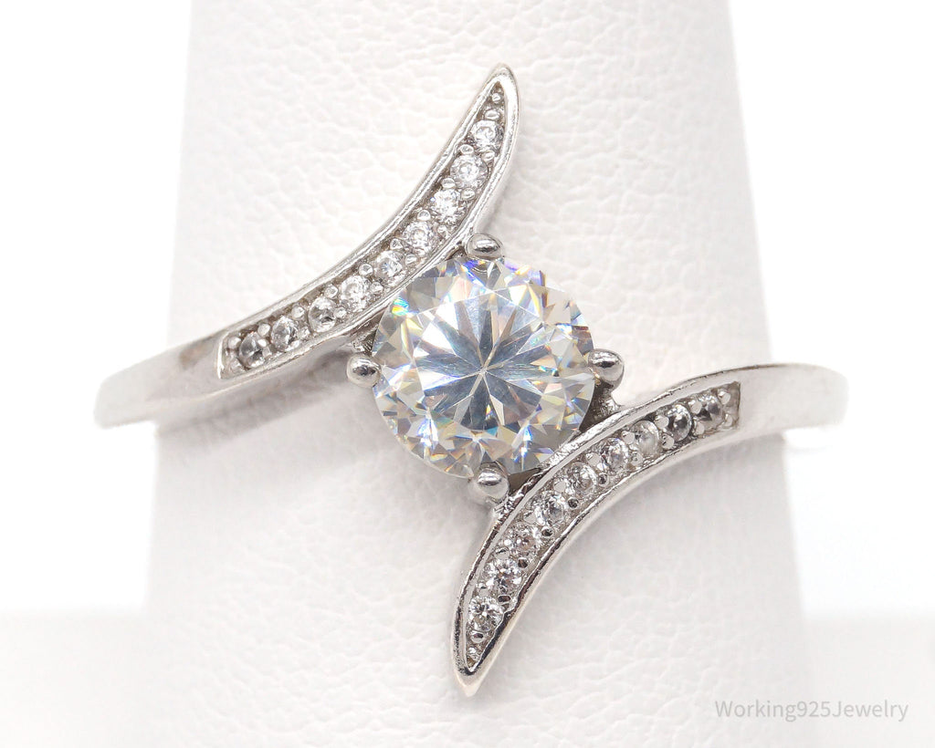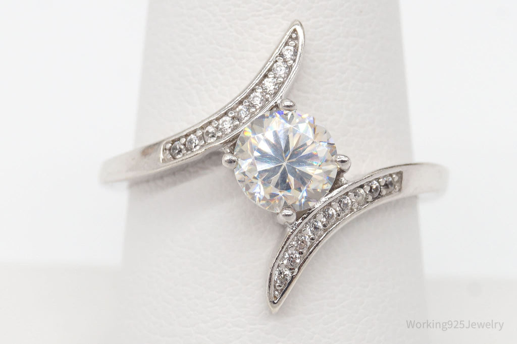 Designer BBJ Round Fabulite Strontium Titanate White Zircon Rhodium Over Sterling Silver Ring - Size 8.5