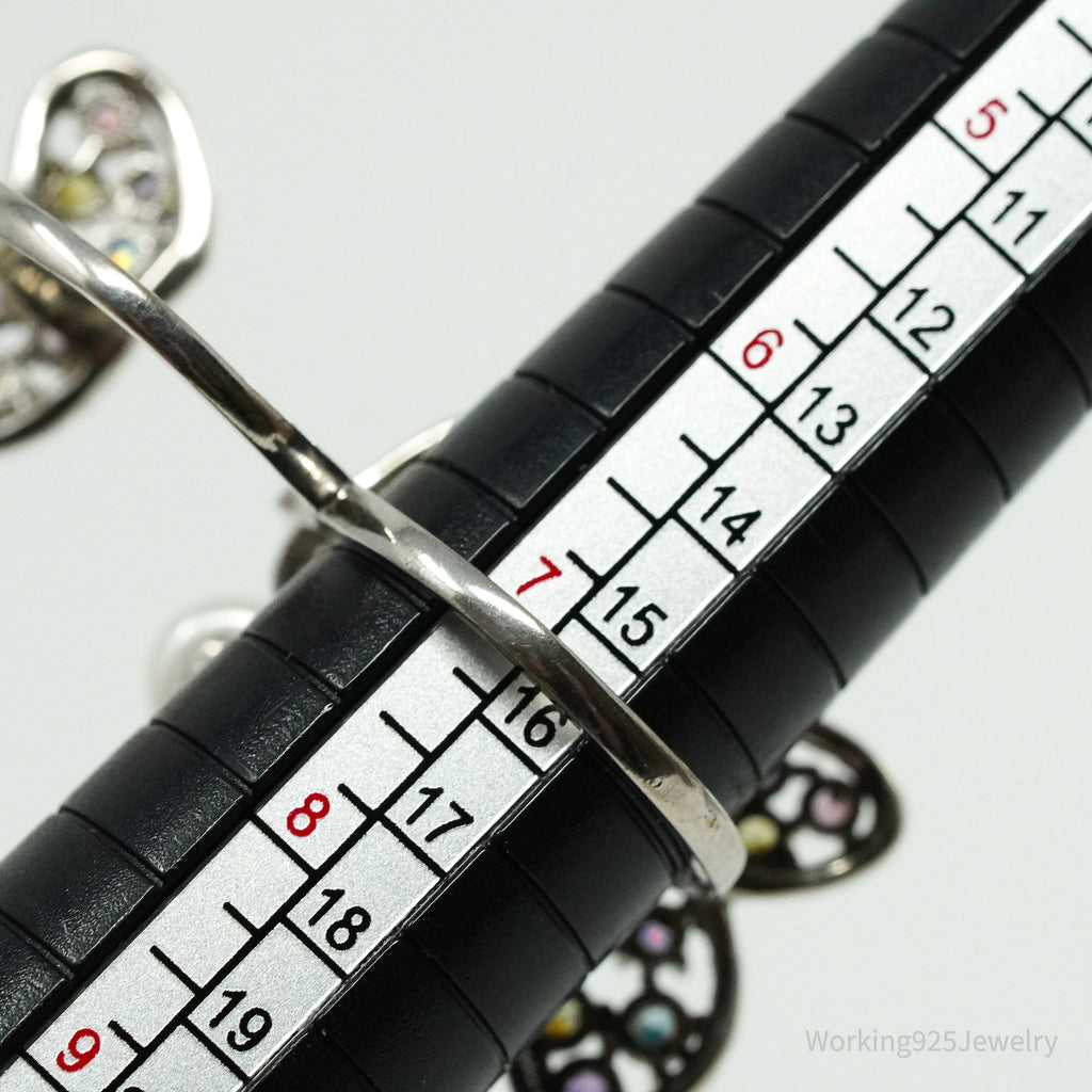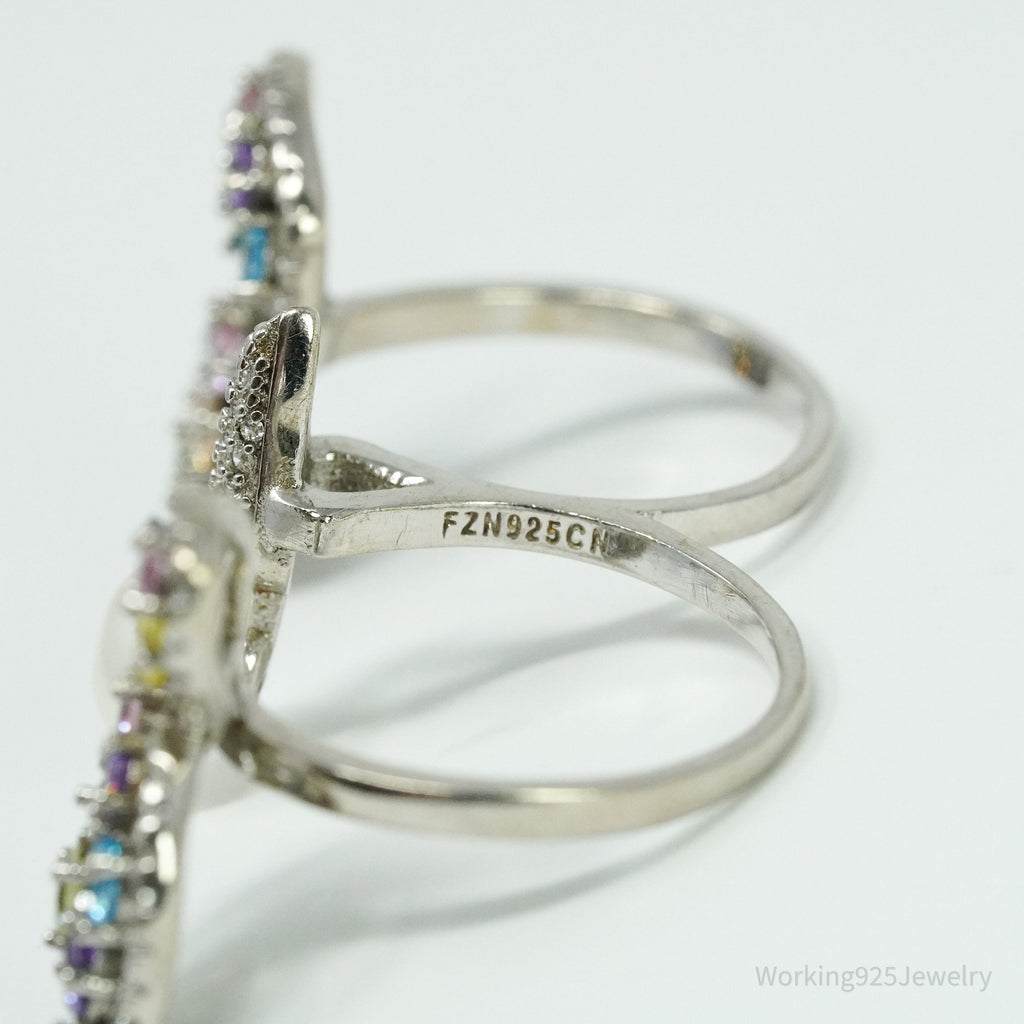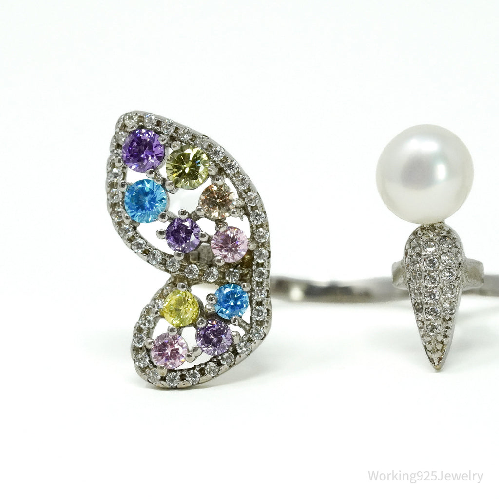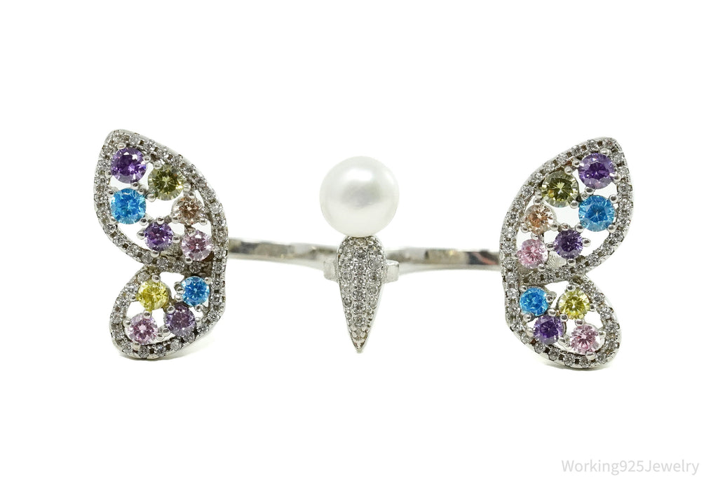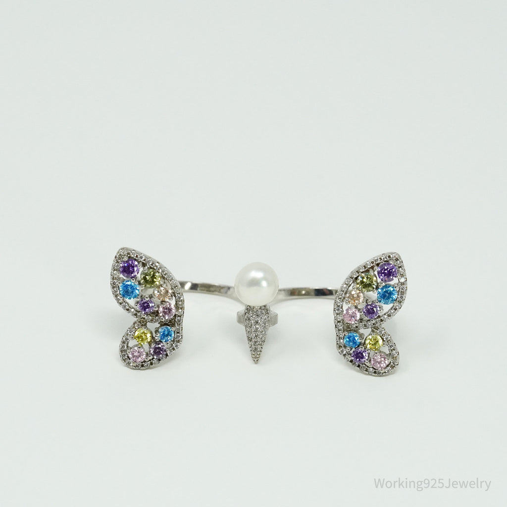FZN Pearl & Multi Color Cubic Zirconia Butterfly Sterling Silver Ring - Size 7