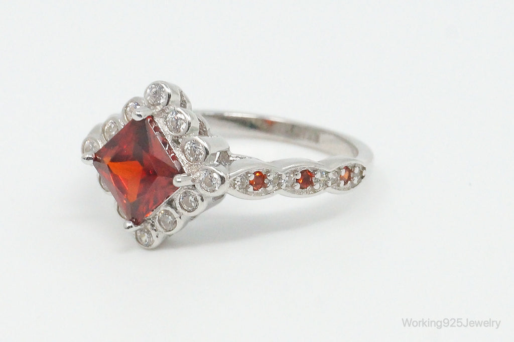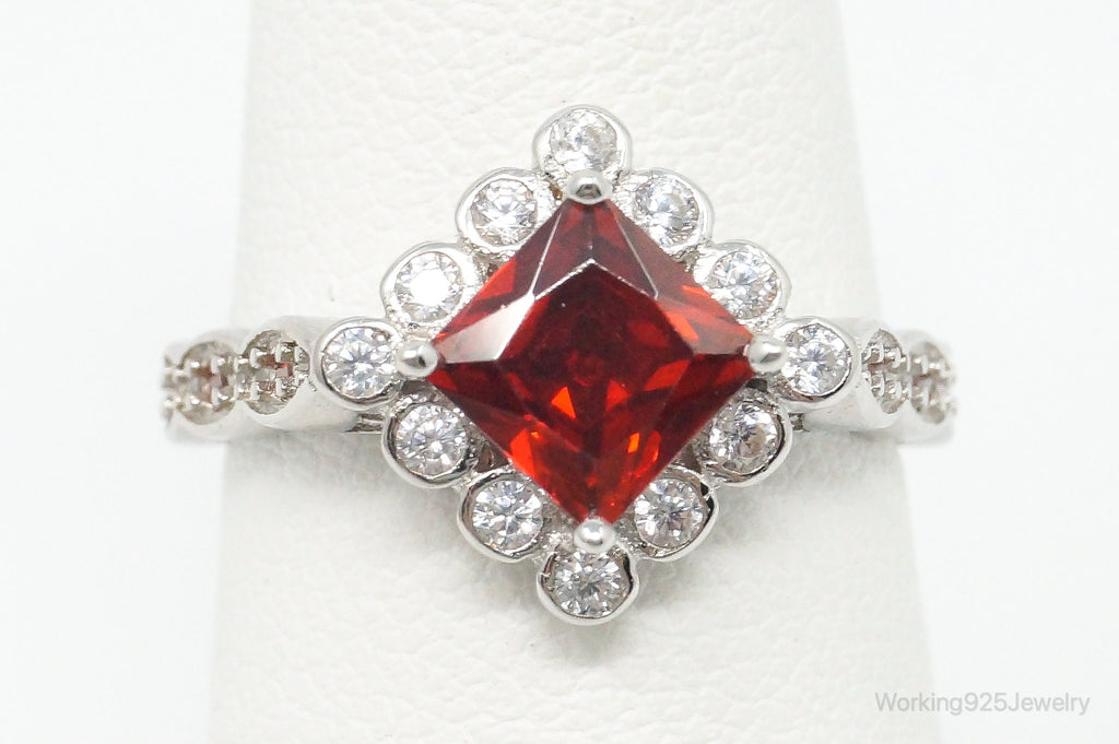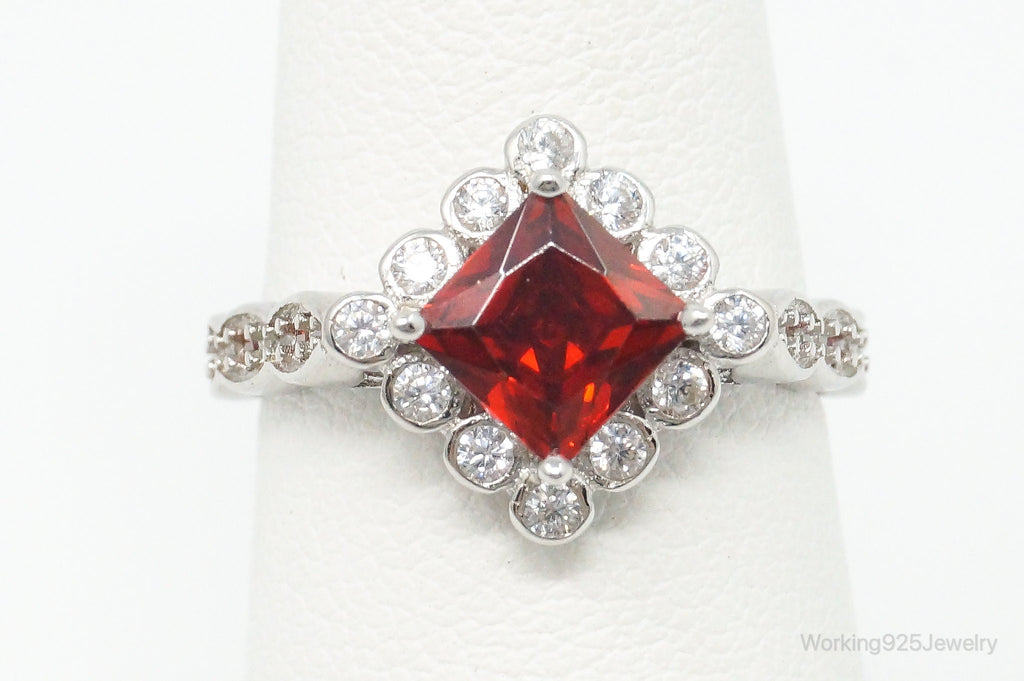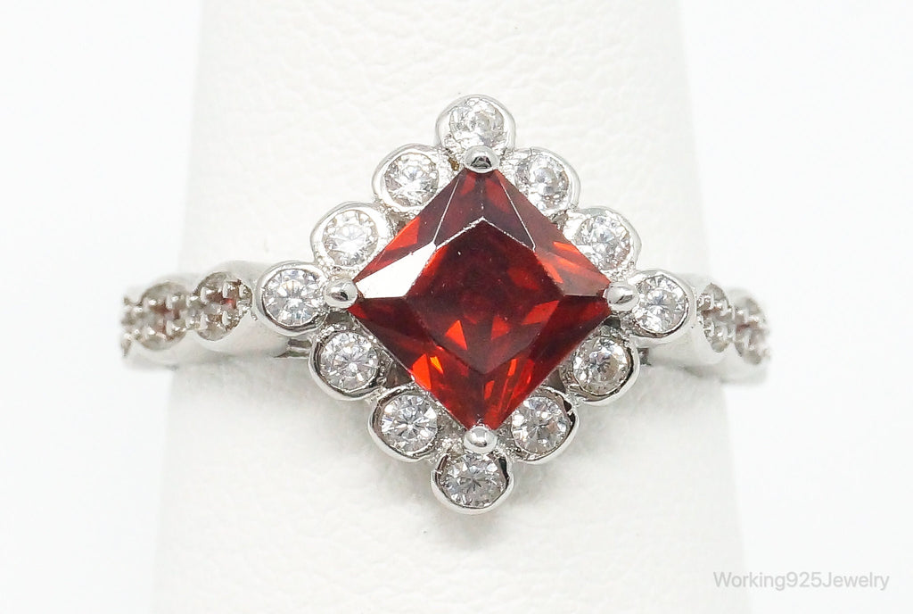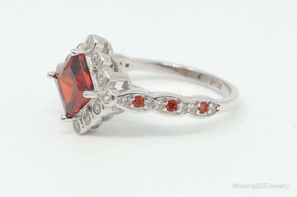 Garnet Cubic Zirconia Sterling Silver Ring - Size 6.5