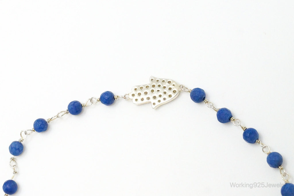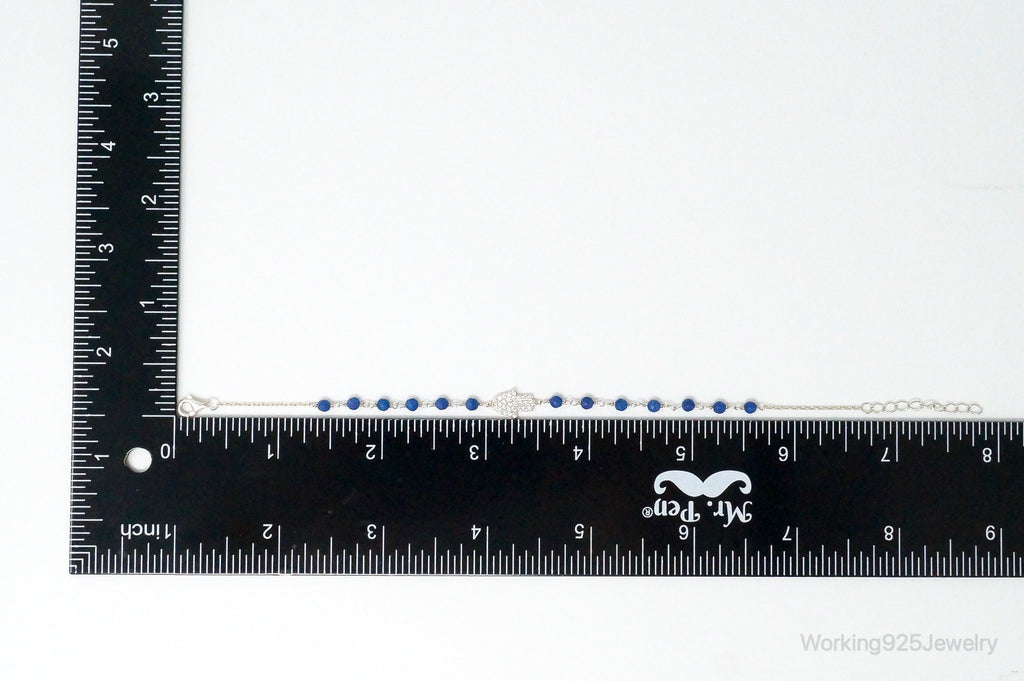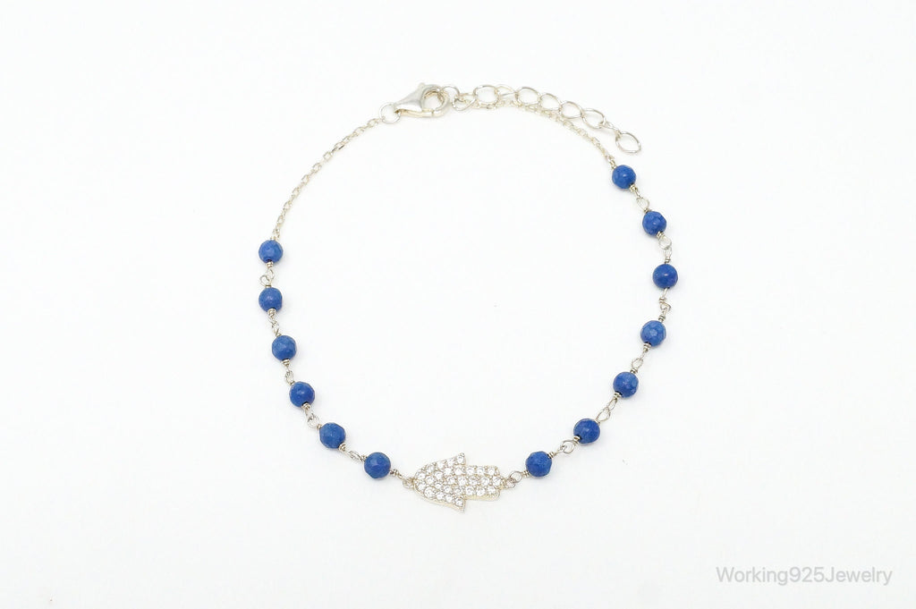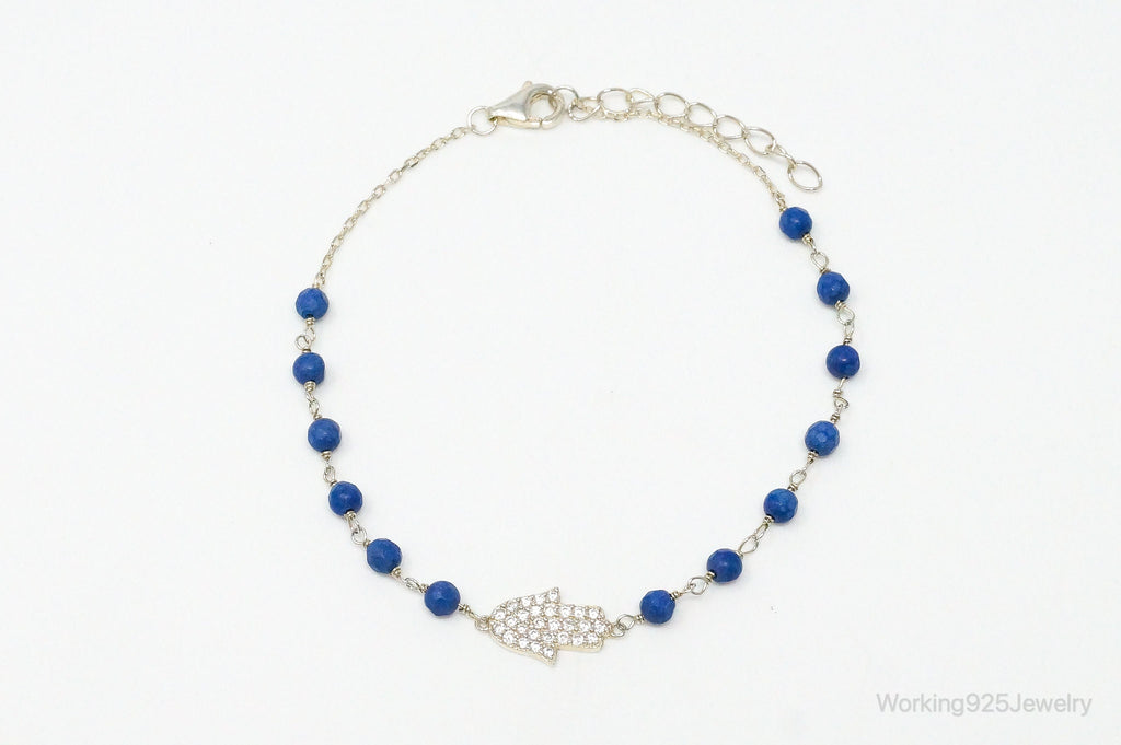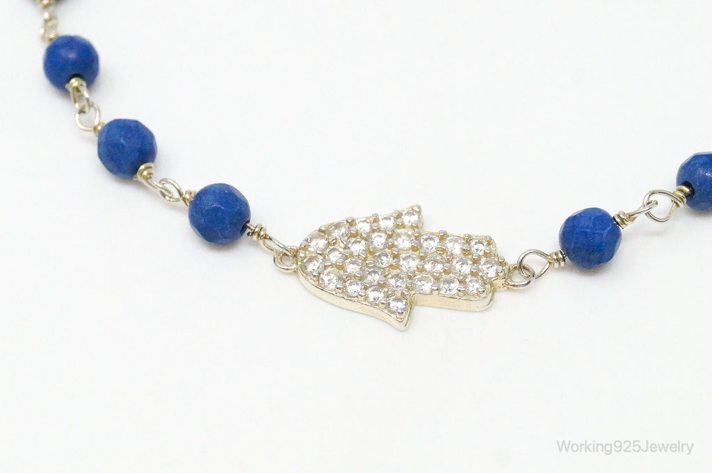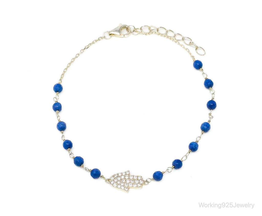 Hand Of Fatima Cubic Zirconia Lapis Lazuli Gold Wash Sterling Silver Bracelet