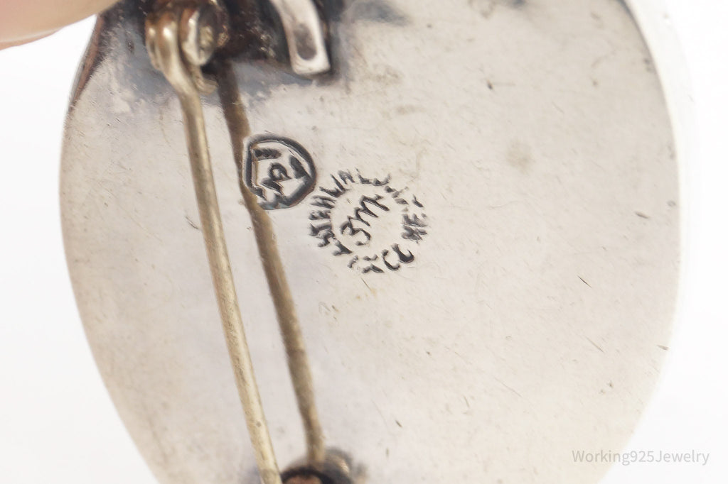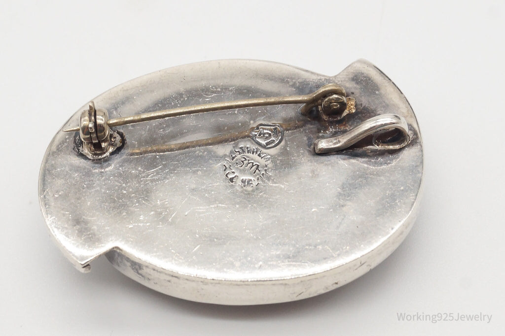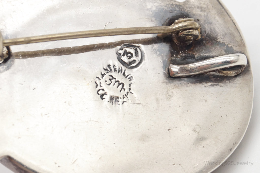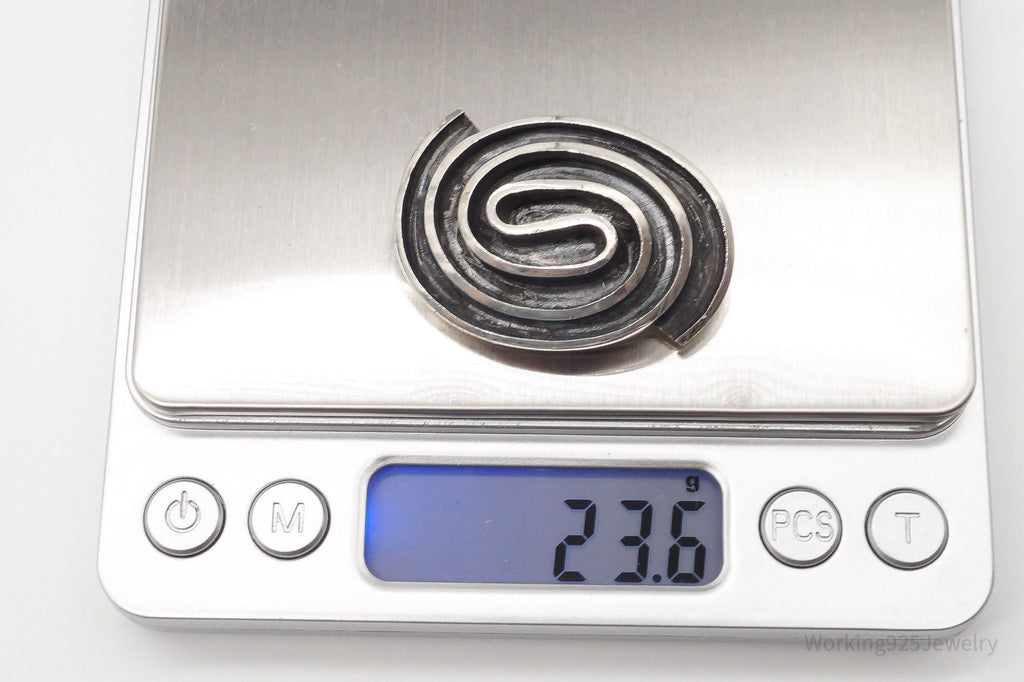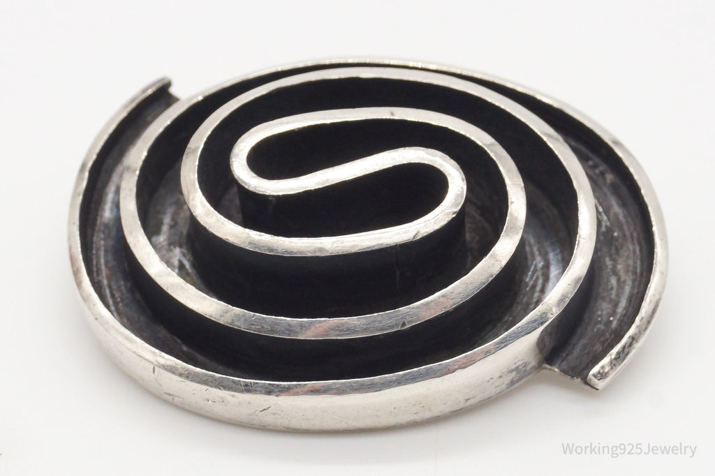 Heavy Vintage Mexico Modernist Sterling Silver Brooch Pin Pendant