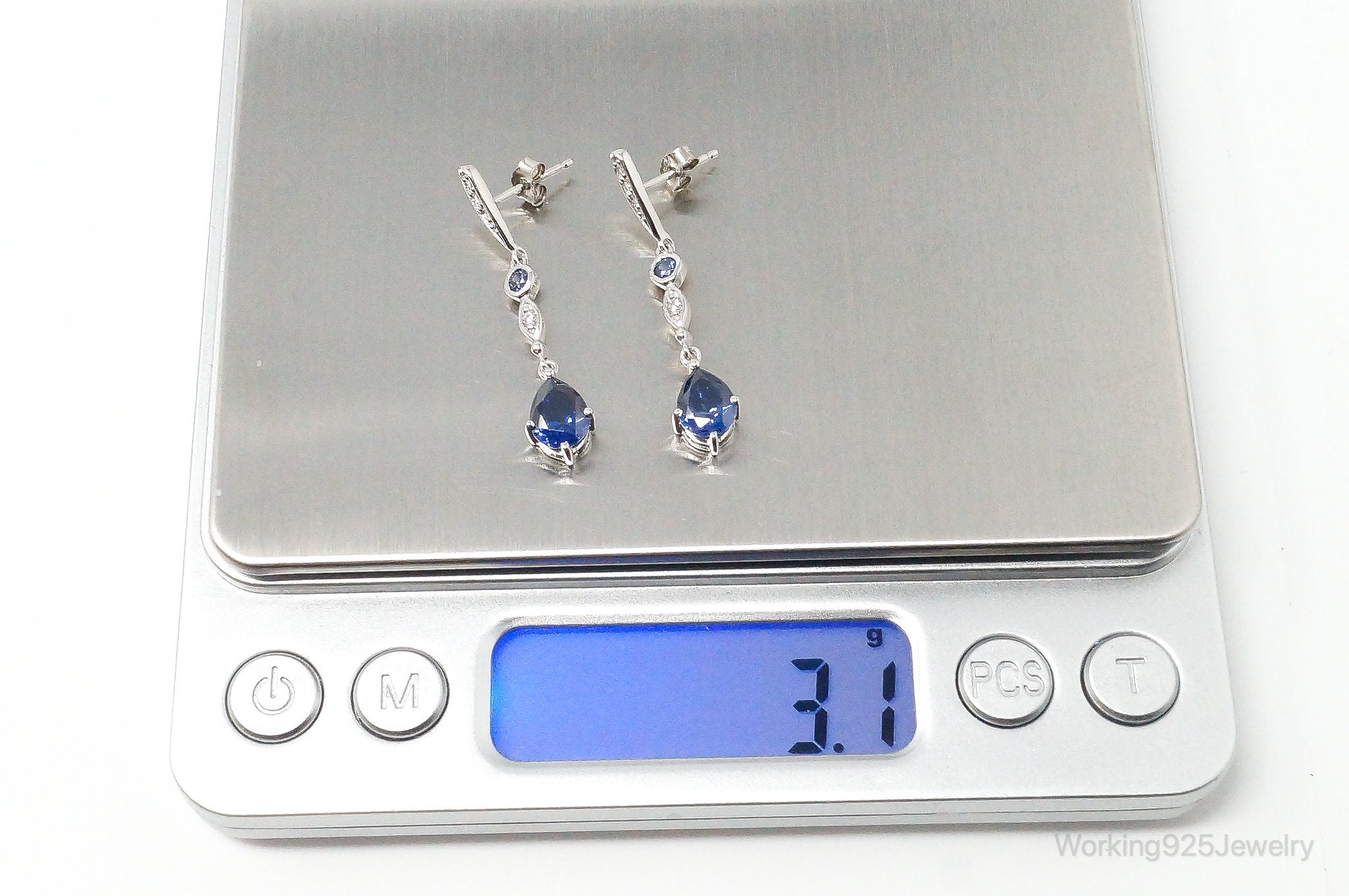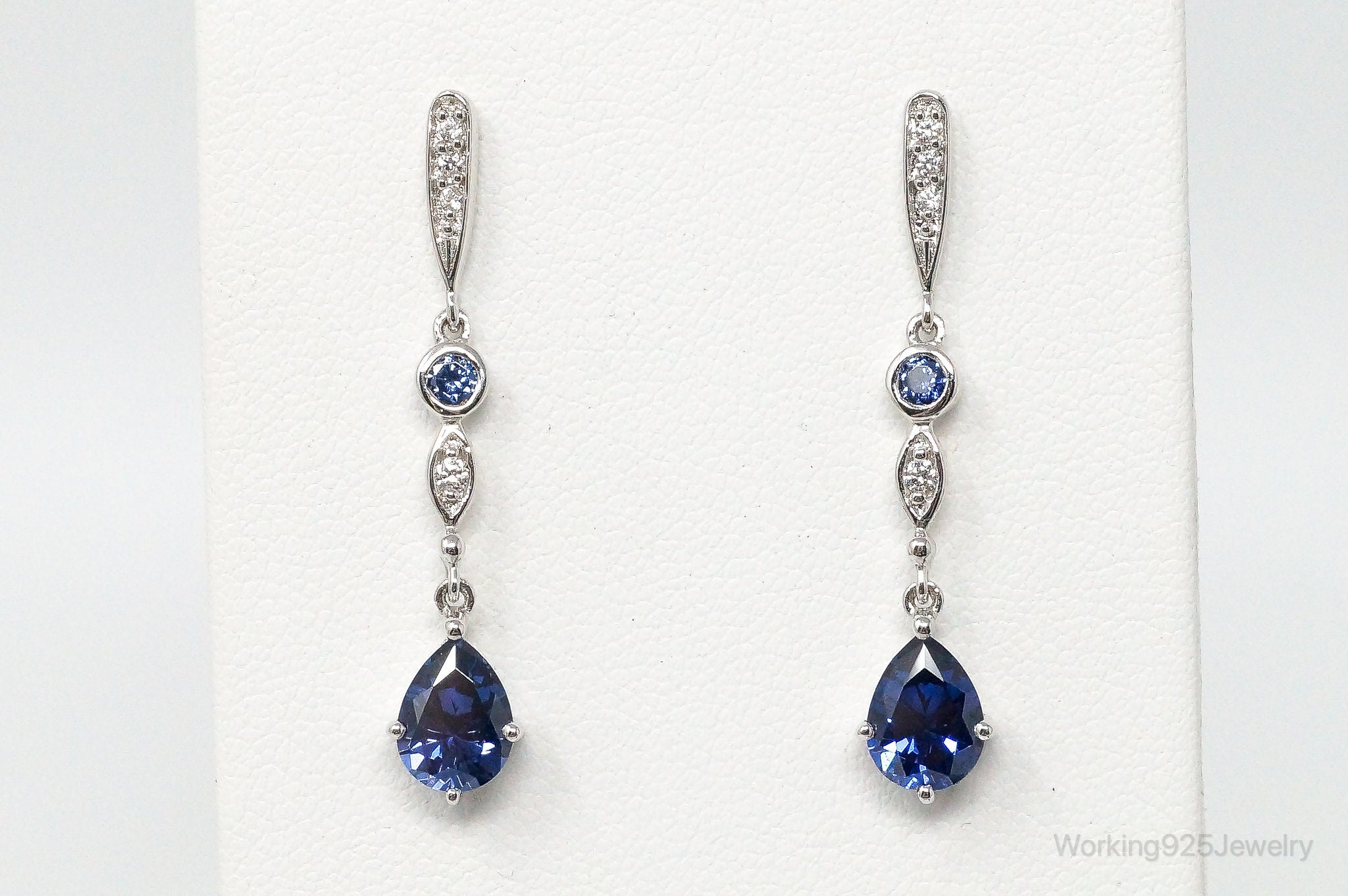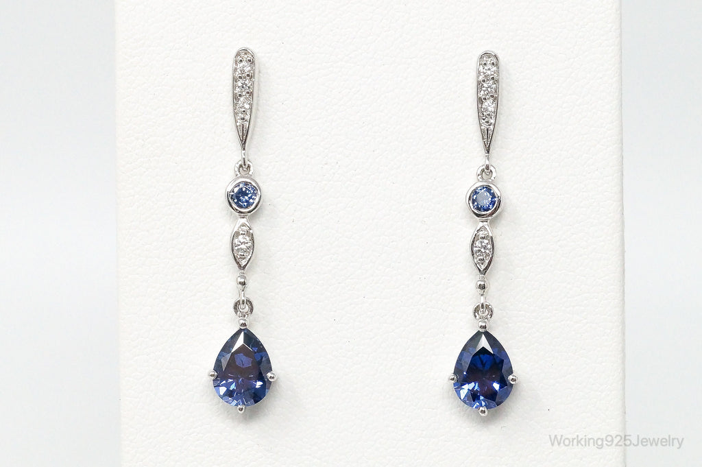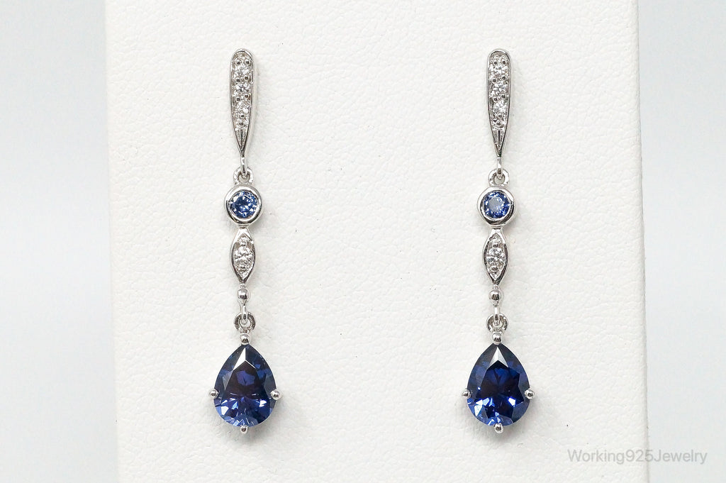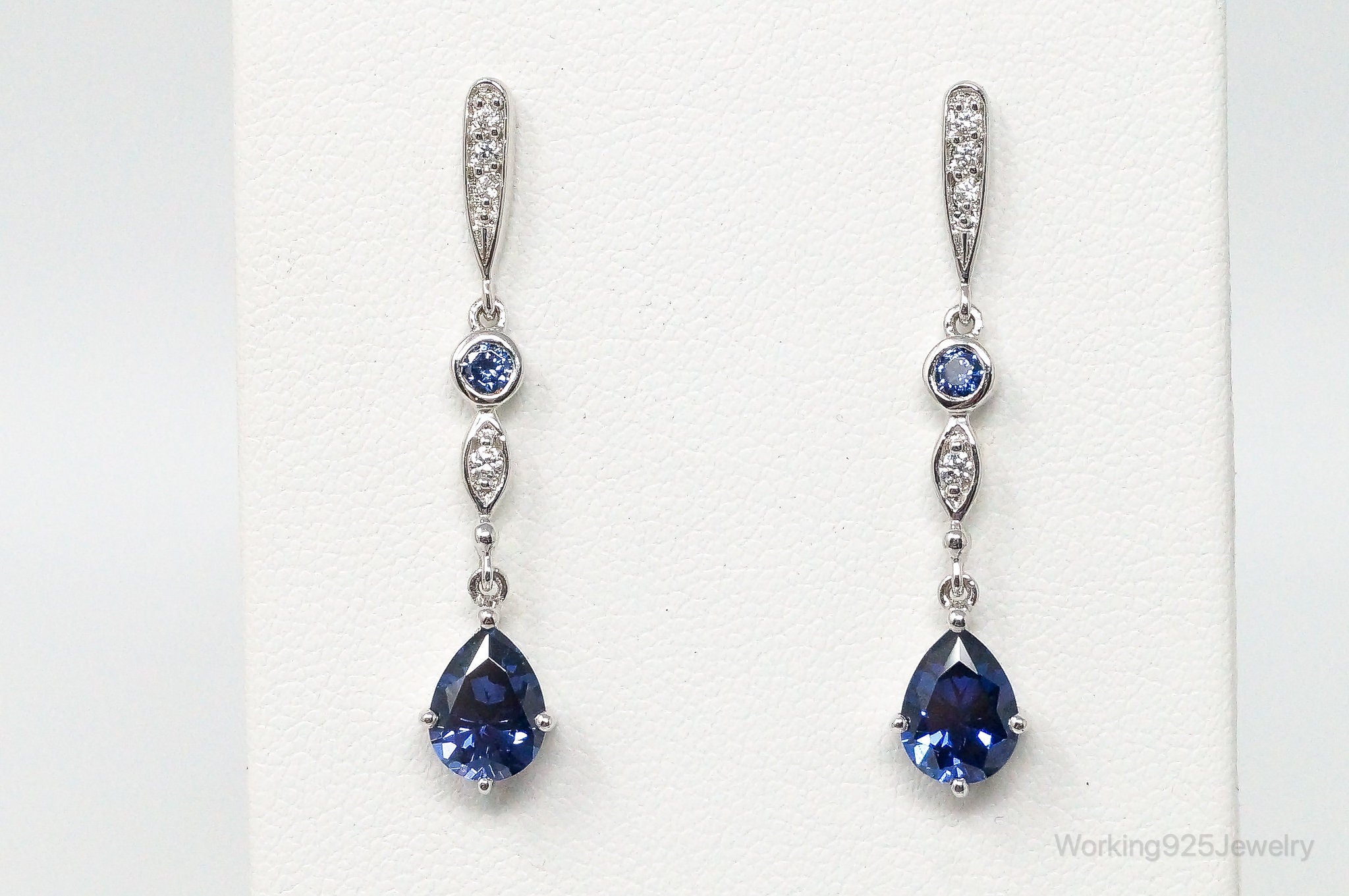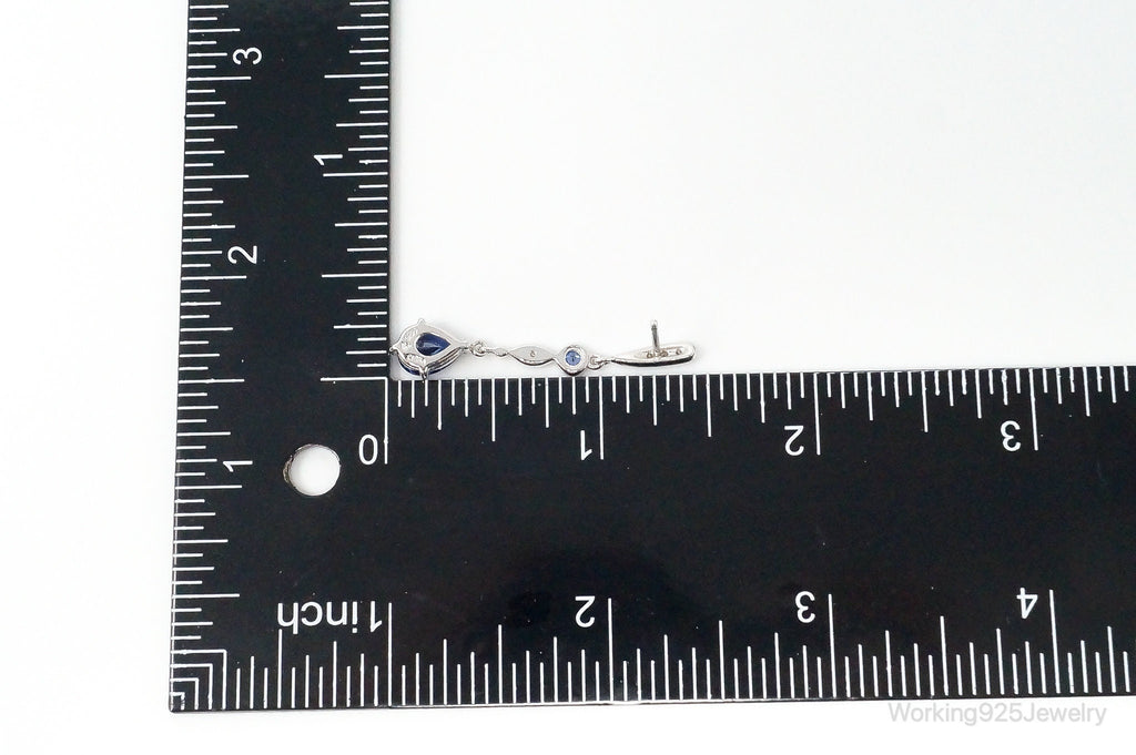 Iolite Cubic Zirconia Art Deco Sterling Silver Earrings