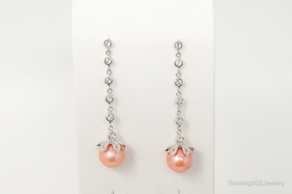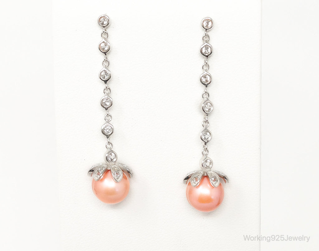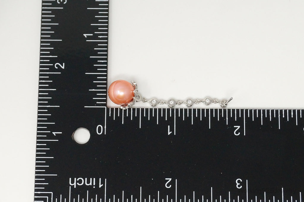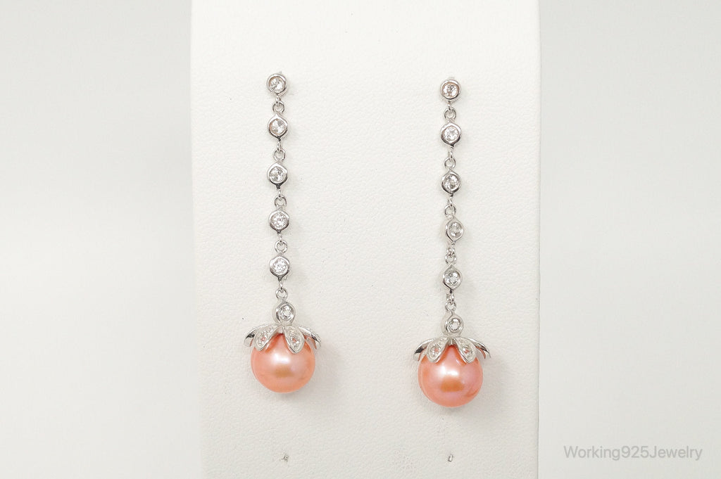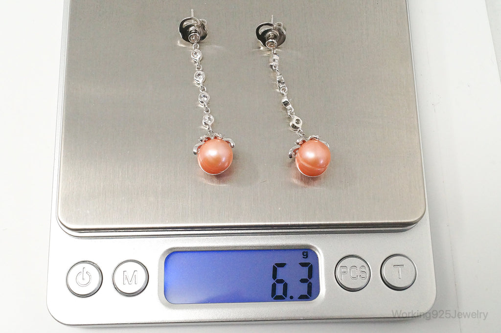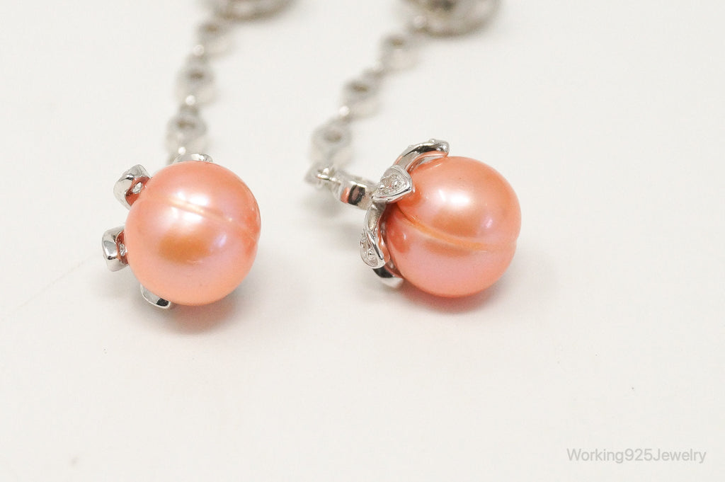Italian Designer Peach Pearl Cubic Zirconia Sterling Silver Earrings