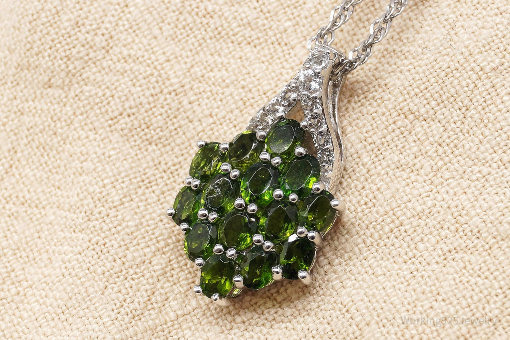 JTV's TGGC Lab Emerald & White Zircon Sterling Silver Necklace 22"