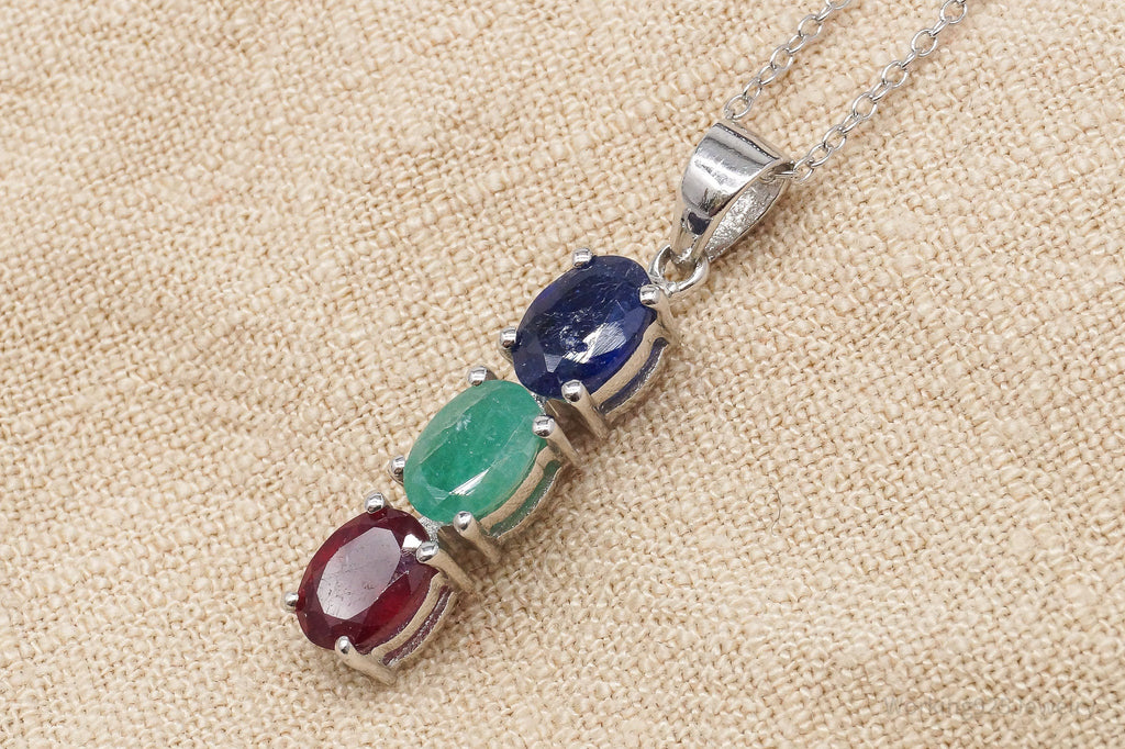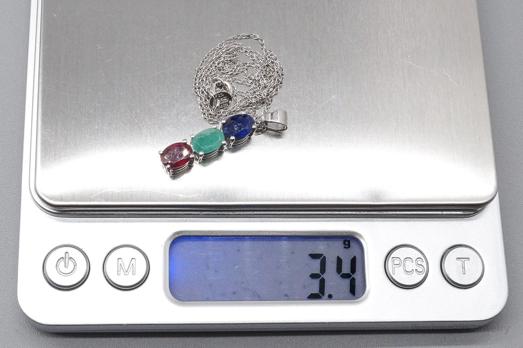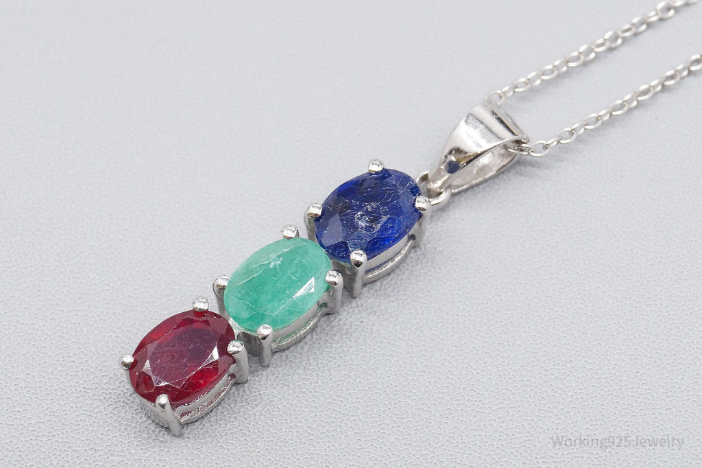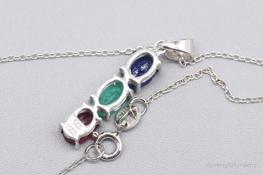 JTV's TGGC Ruby Emerald Sapphire Sterling Silver Necklace 18"