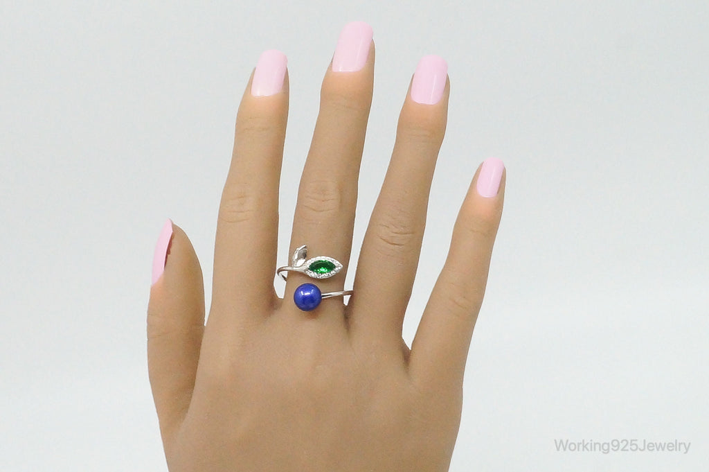 Lab Pearl Green Topaz Cubic Zirconia Sterling Silver Ring Size - 8.5 Adjustable