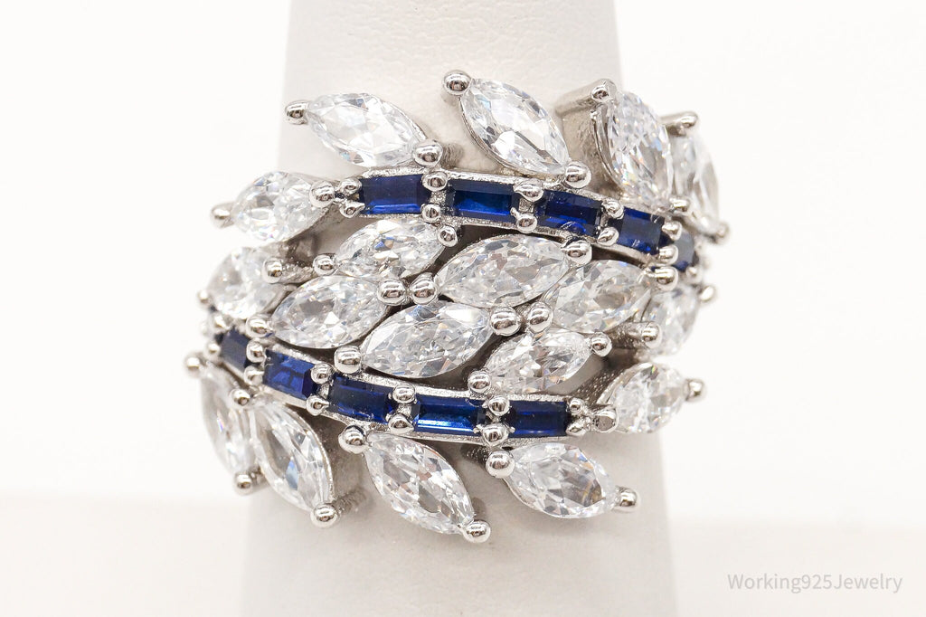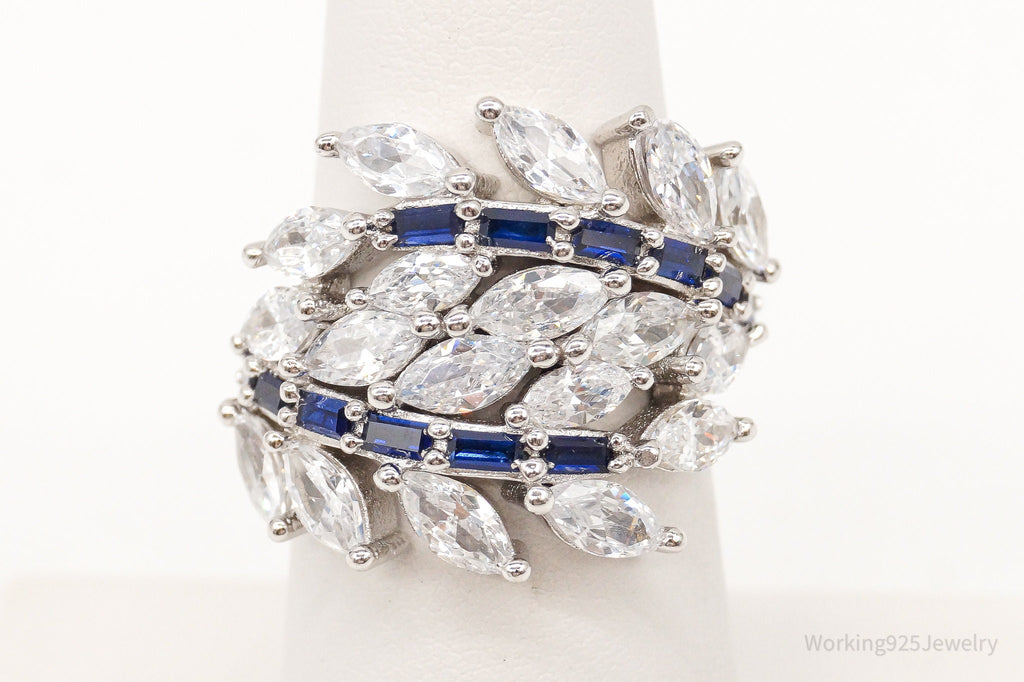 Lab Sapphire Cubic Zirconia Sterling Silver Ring - Size 6