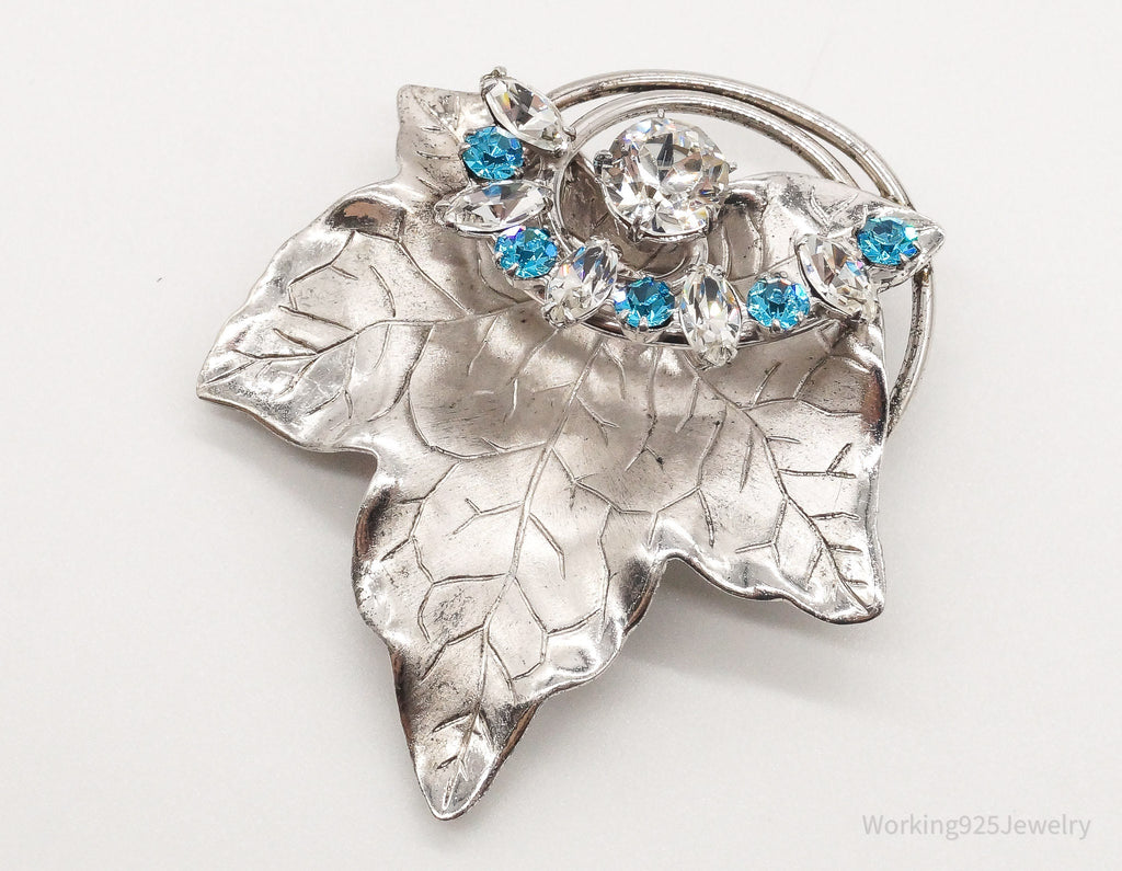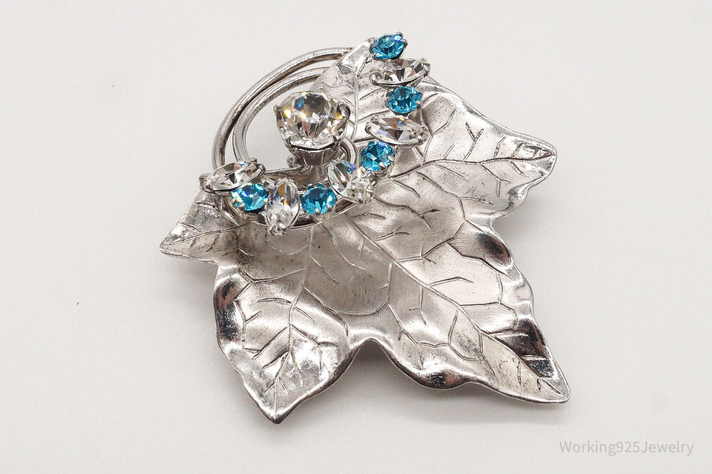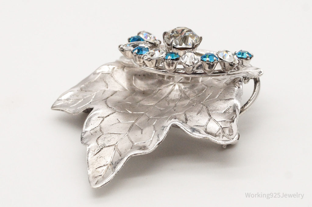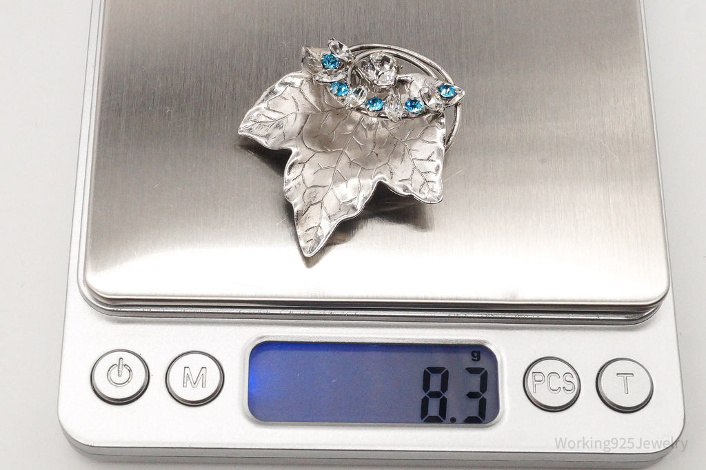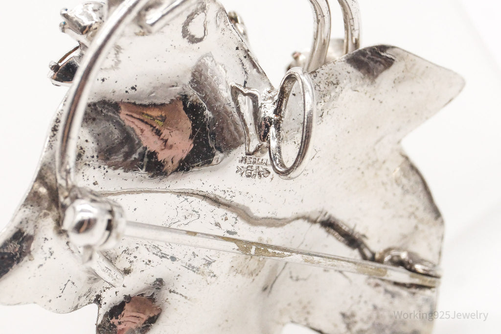 Large Antique Designer Crystal Sterling Silver Brooch Pin Pendant