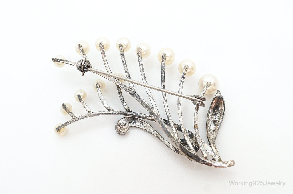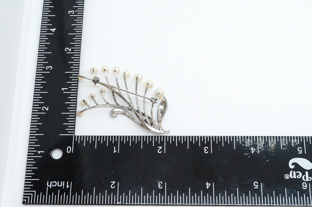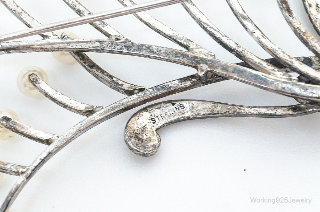 Large Antique Faux Pearl Sterling Silver Brooch Pin