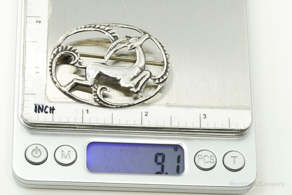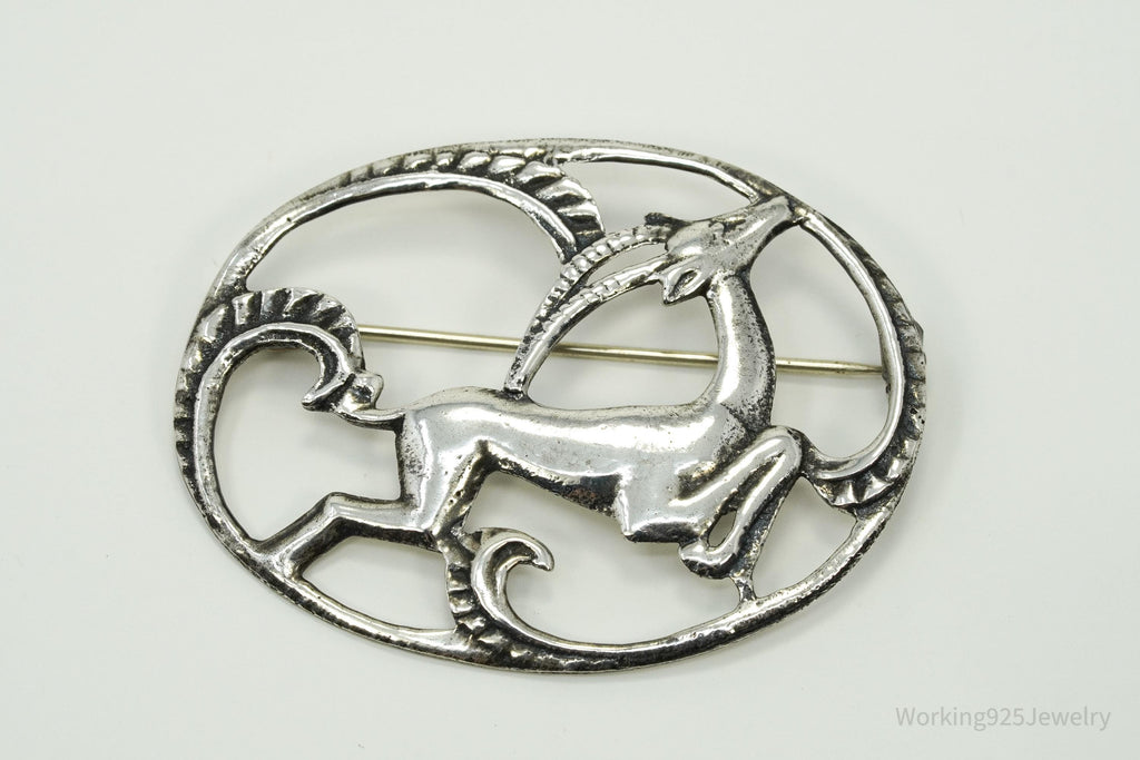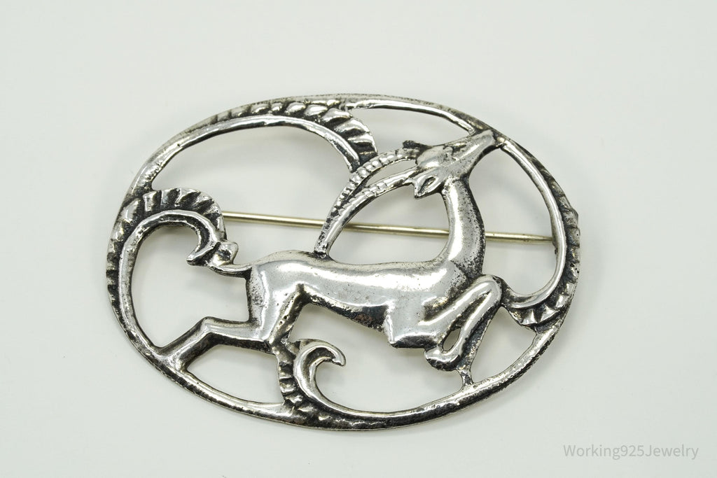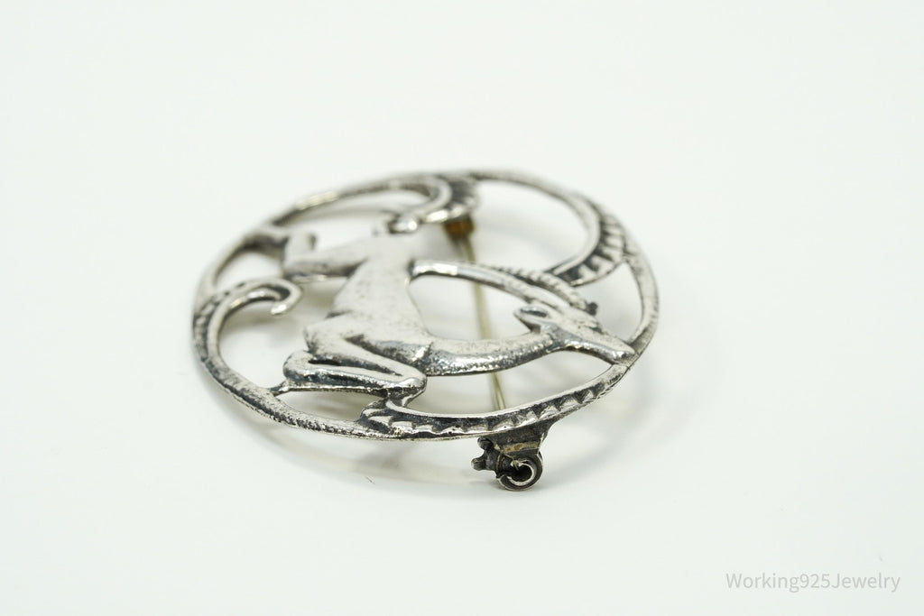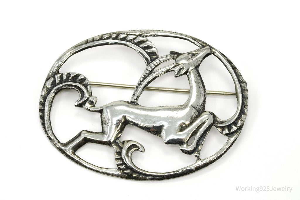 Large Antique Gazelle Sterling Silver Brooch Pin