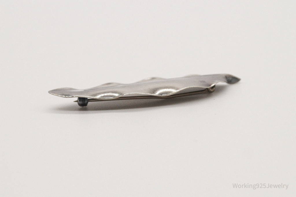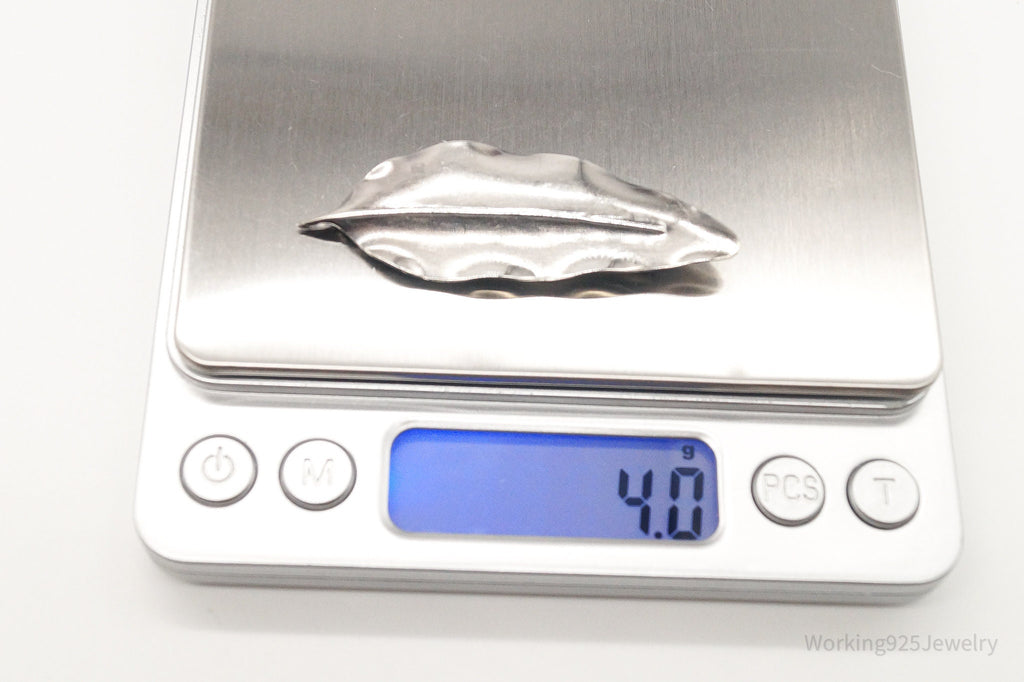 Large Antique Handmade Sterling Silver Leaf Pin Brooch