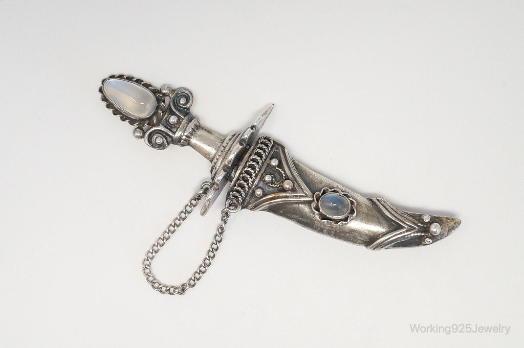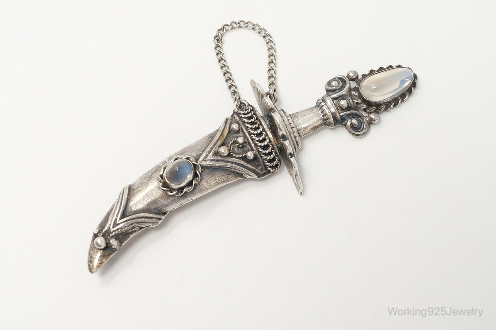 Large Antique Moonstone Sword Dagger Pin Brooch